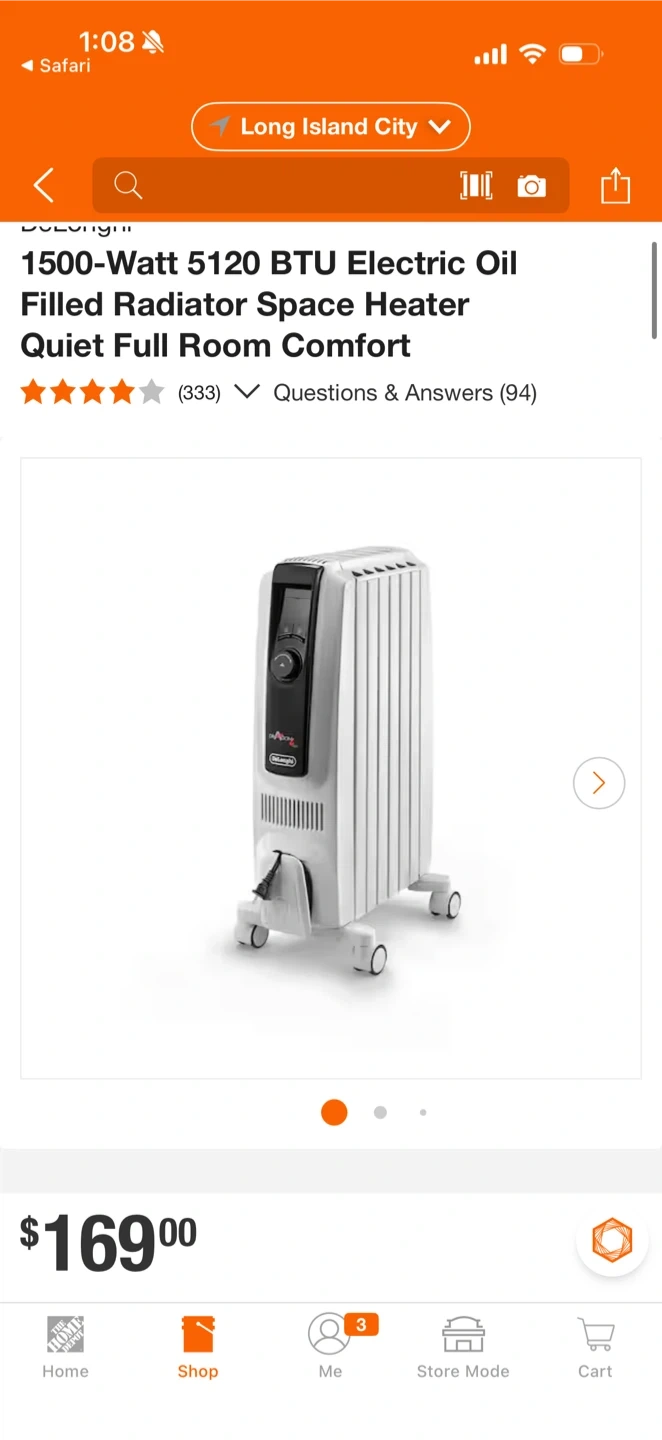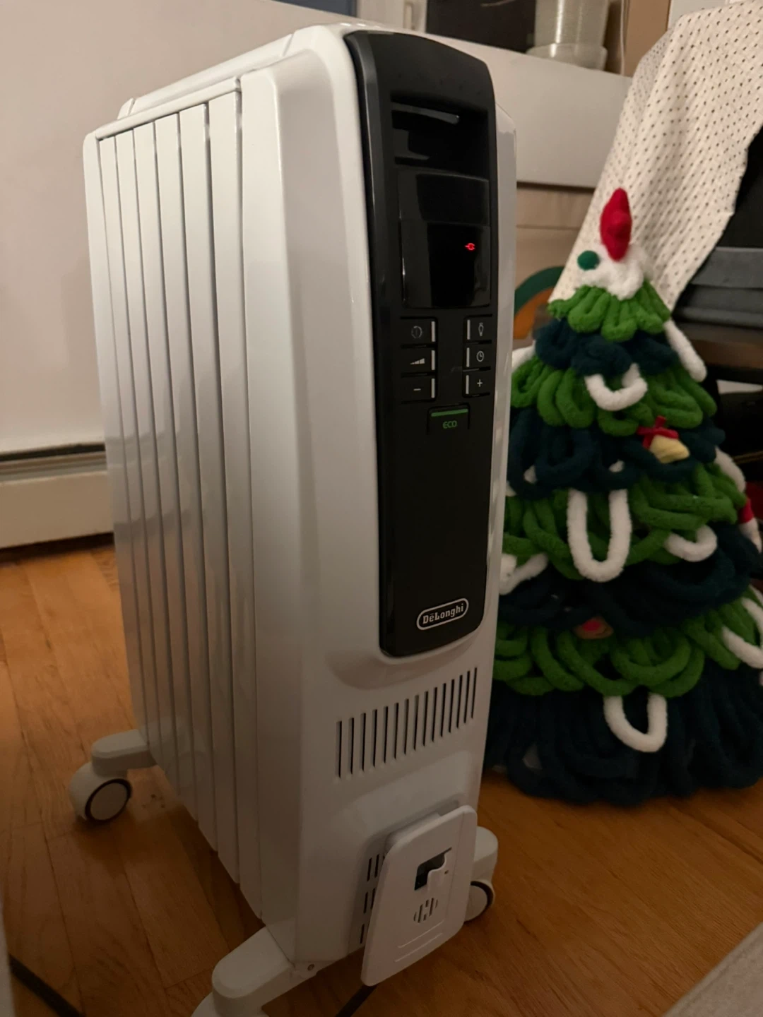 This is a DeLonghi 1500-watt electric oil-filled radiator space heater.