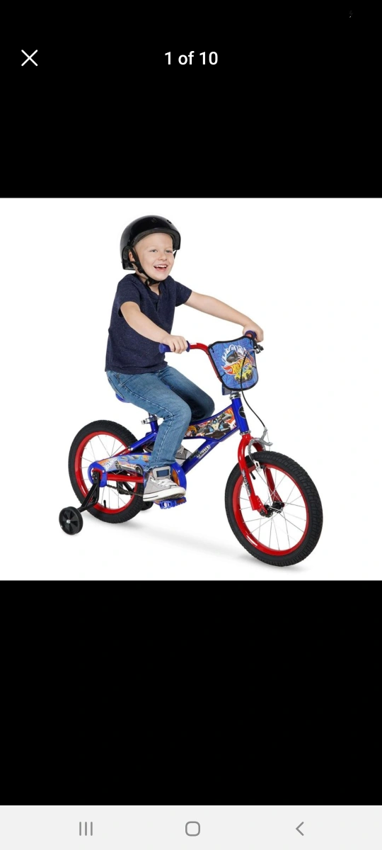 Learn how to ride a bike and have fun with the 16 inch Hot Wheels bike with traninig wheels.