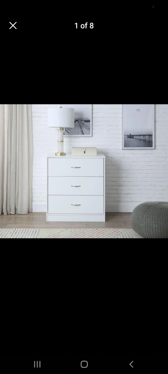The Mainstays 3-Drawer Dresser offers generous storage for any bedroom or closet. Three drawers with high sides and a depth of approximately 15" provide plenty of space for clothing, accessories and more. At approximately 28" wide and 30" tall, this stylish dresser has a low profile and is a great accent piece for your bedroom or guest room. Metal drawer handles and a sleek White finish gives this chest of drawers a timeless look that complements any modern or classic décor. With a sturdy and durable construction, the Mainstays 3-Drawer Dresser in White is a great addition to any home.