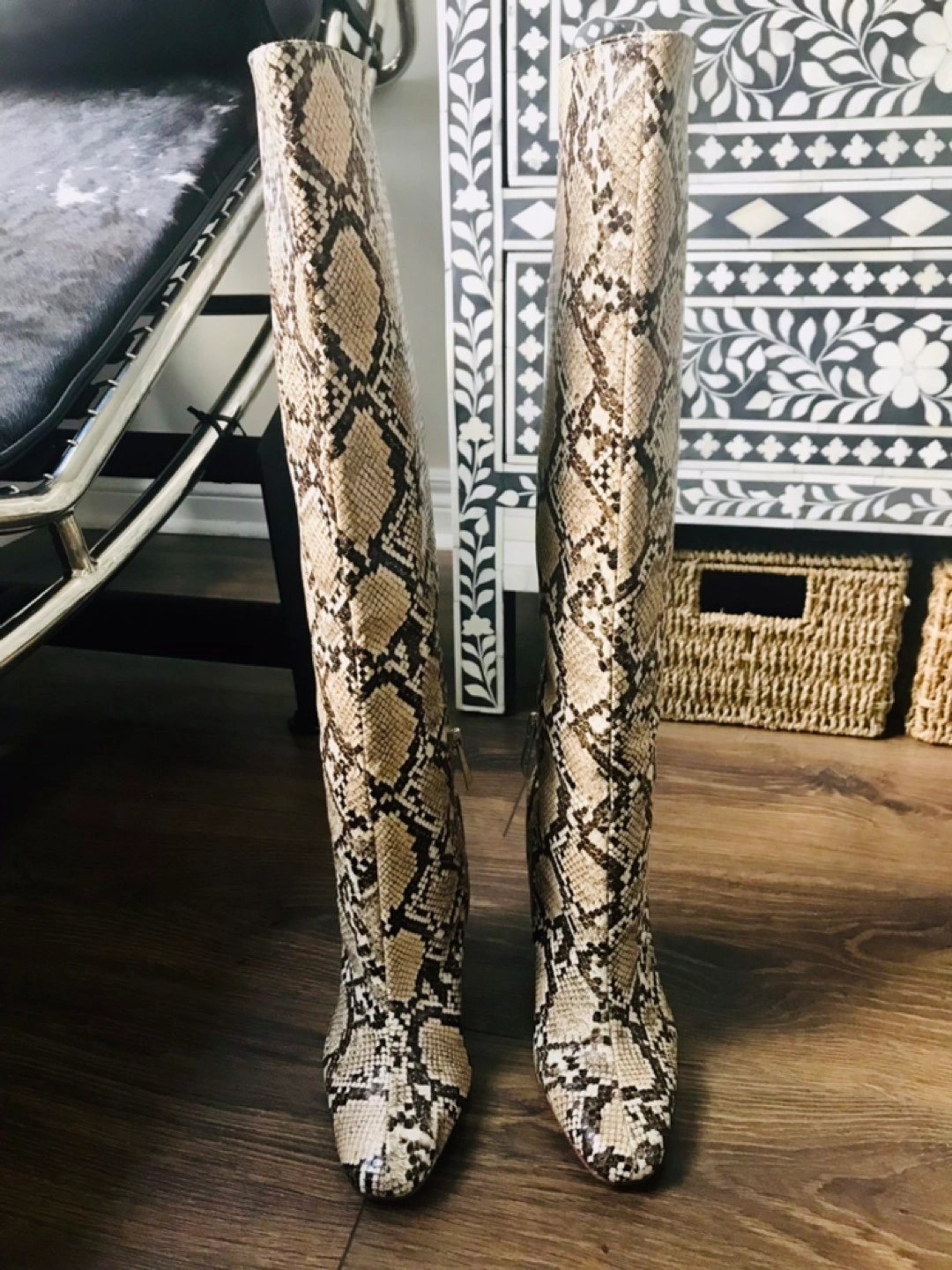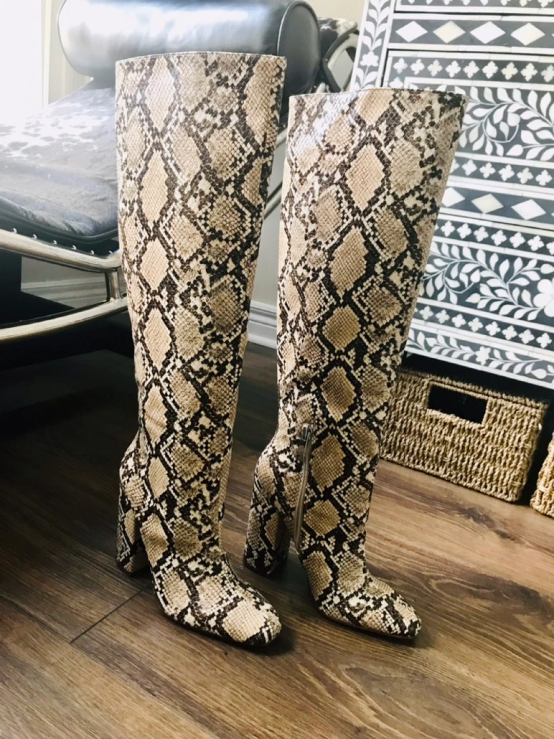 Snake print knee high boots 6
