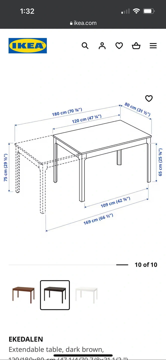 Please see IKEA website for more product details: https://www.ikea.com/ca/en/p/ekedalen-extendable-table-dark-brown-40340804/?gbraid=0AAAAACqC6ErYdcpT6179InmJRYViPKze3&gclid=EAIaIQobChMI6N3Gqv67gAMVjpXICh0K_gOvEAQYASABEgIH4PD_BwE