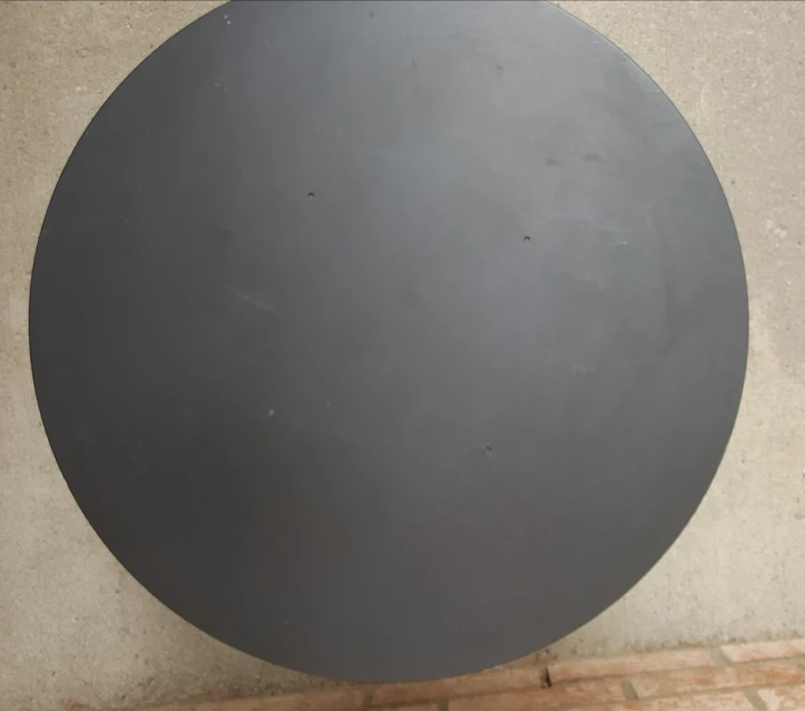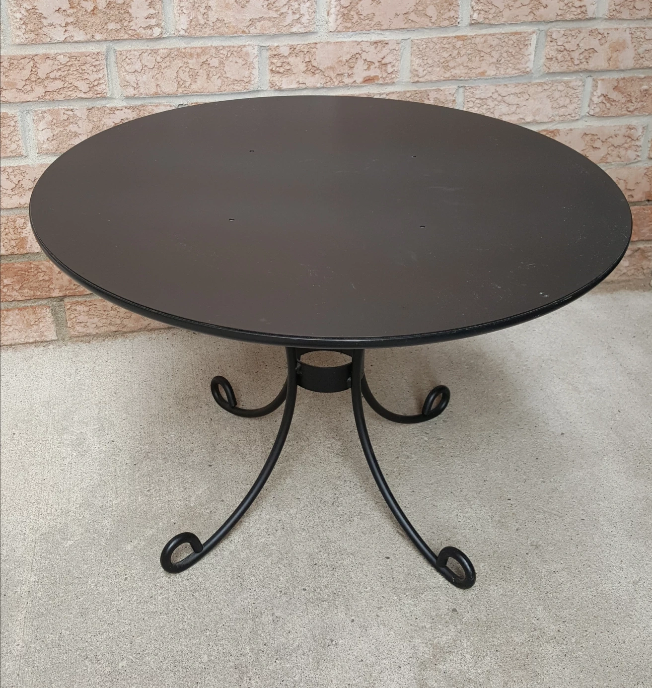 Dimention: 25" round diameter and 18" height. Top layer is black Matt steel and underneath wood. Legs are also black steel. chic and elegant!