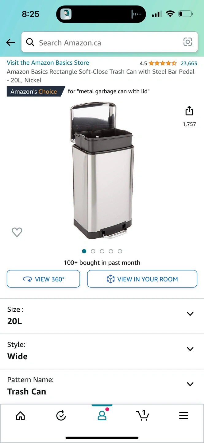 Amazon Basics Rectangle Soft-Close Trash Can 20L