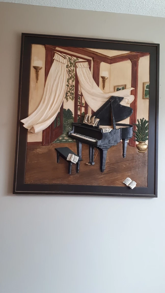3D painting (bas relief) by Denise Plouffe who was born in Quebec and worked as a sculptor for F.R.E.S.K. International before her passing in 2022.
