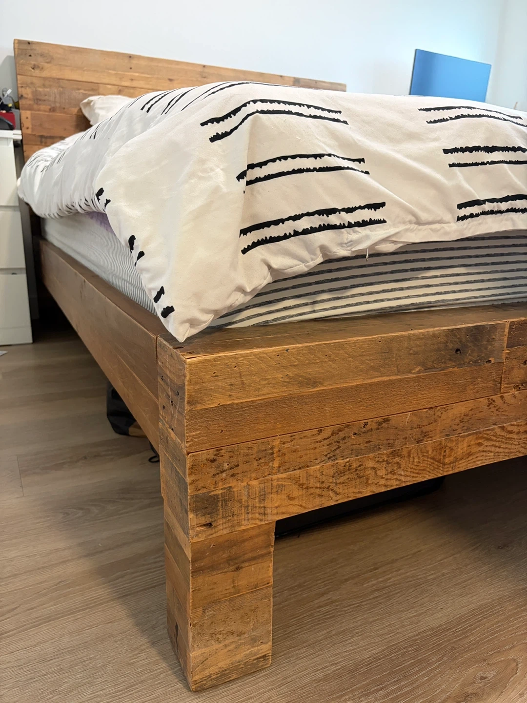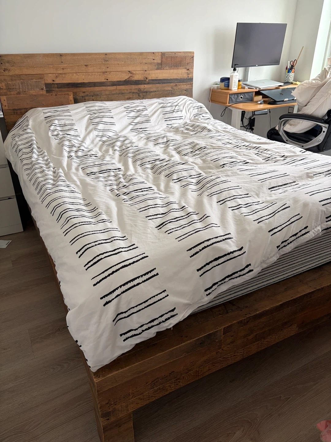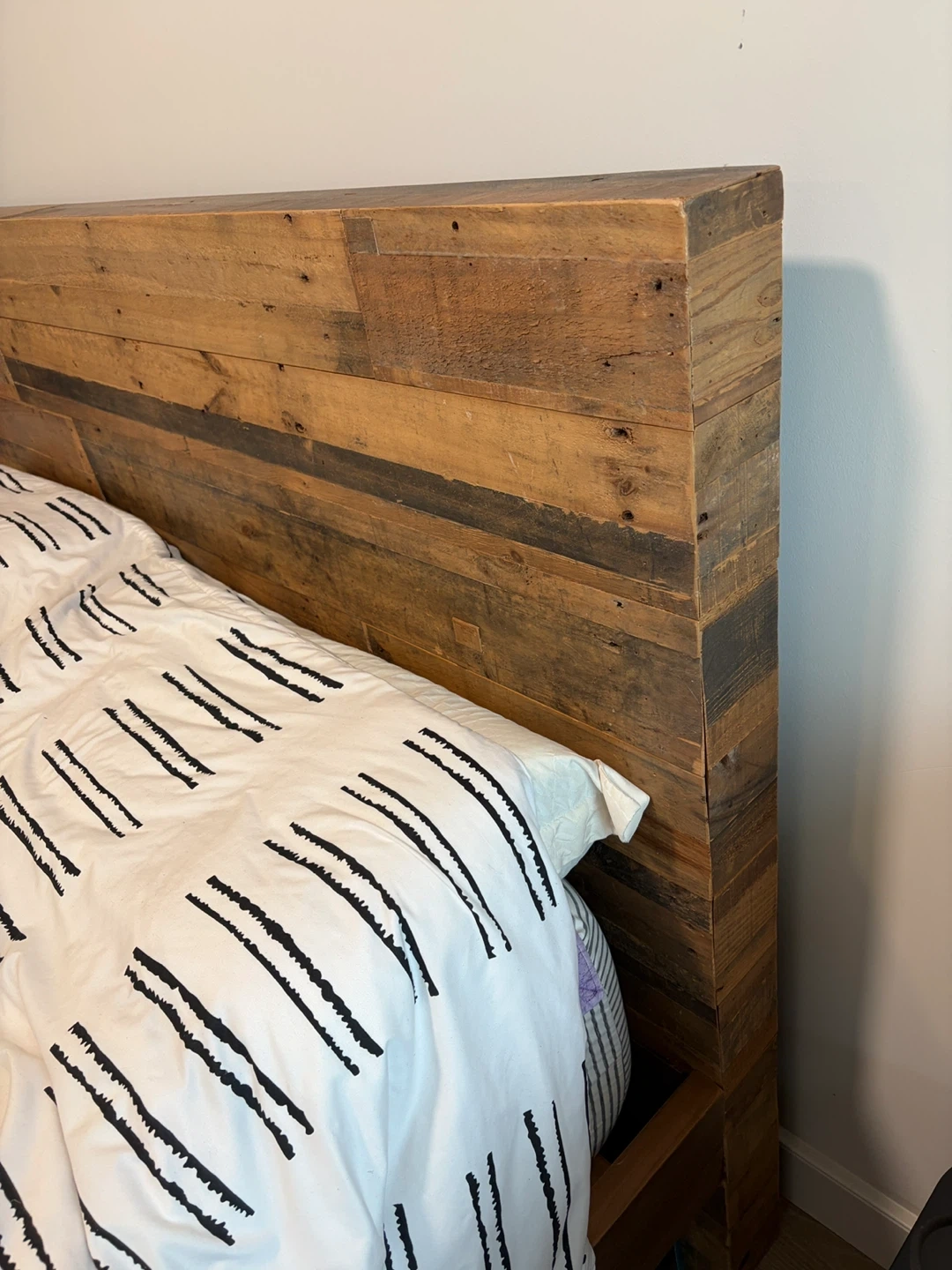 Buy & SellWest elm bed frame with mattress - Queen sizeWest elm bed frame with mattress - Queen size$200West Elm Wooden platform queen size bed frame with a rustic reclaimed wood headboard. Solid wood construction. No box spring required.ConditionGoodDimensions63x89x46WHERE TO MEETCheck LocationView MapSELLERverifiedJudyProspect Heights600 reviews0 chats·1 favorites·35 viewsSEND CHAT TO SELLERHi Judy! I’m interested in your listing.Hi Judy! I’m interested in your listing.Get the Karrot app to chatSign In to chat