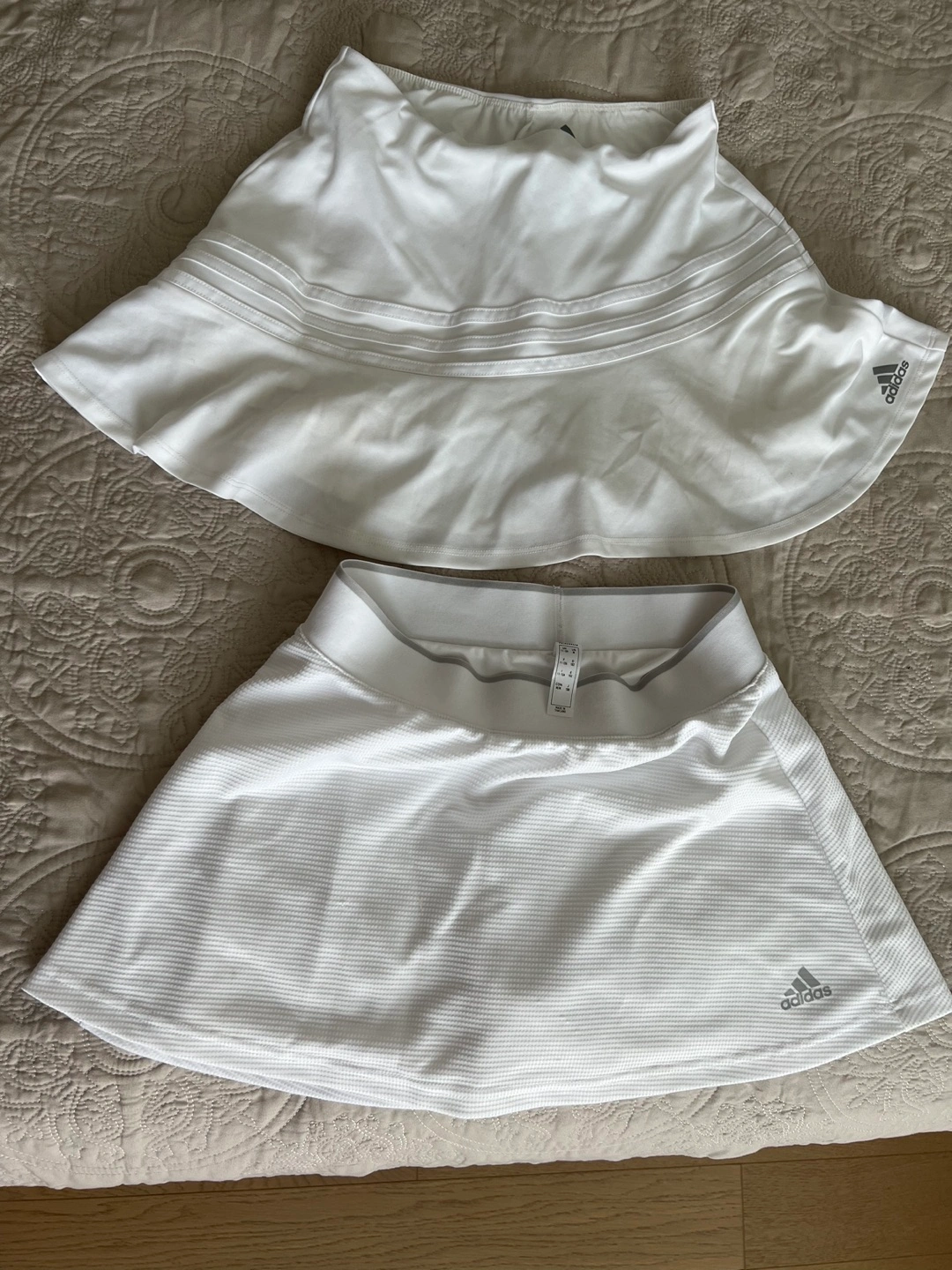 2 Adidas white girls tennis skirts. size 10-12. One is brand new, the other one is in a very good condition.