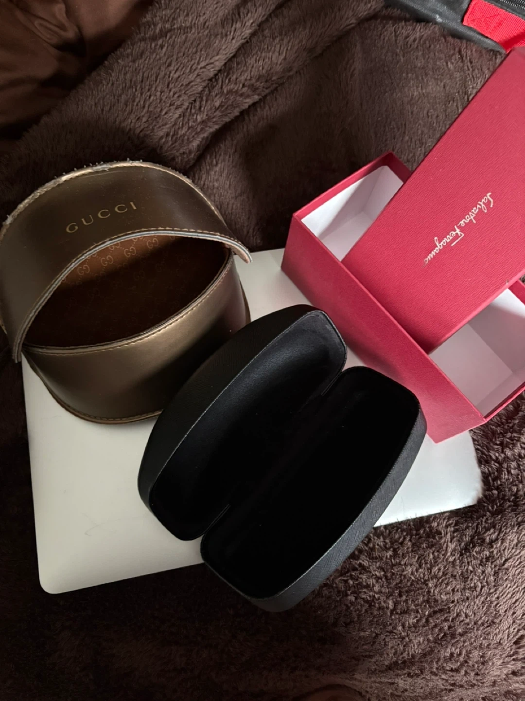 Selling two eyeglass cases: one Gucci and one Salvatore Ferragamo. Both are excellent condition and ready to protect your glasses!