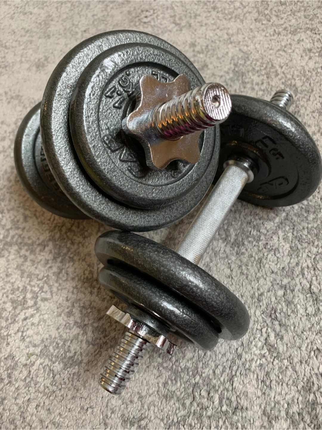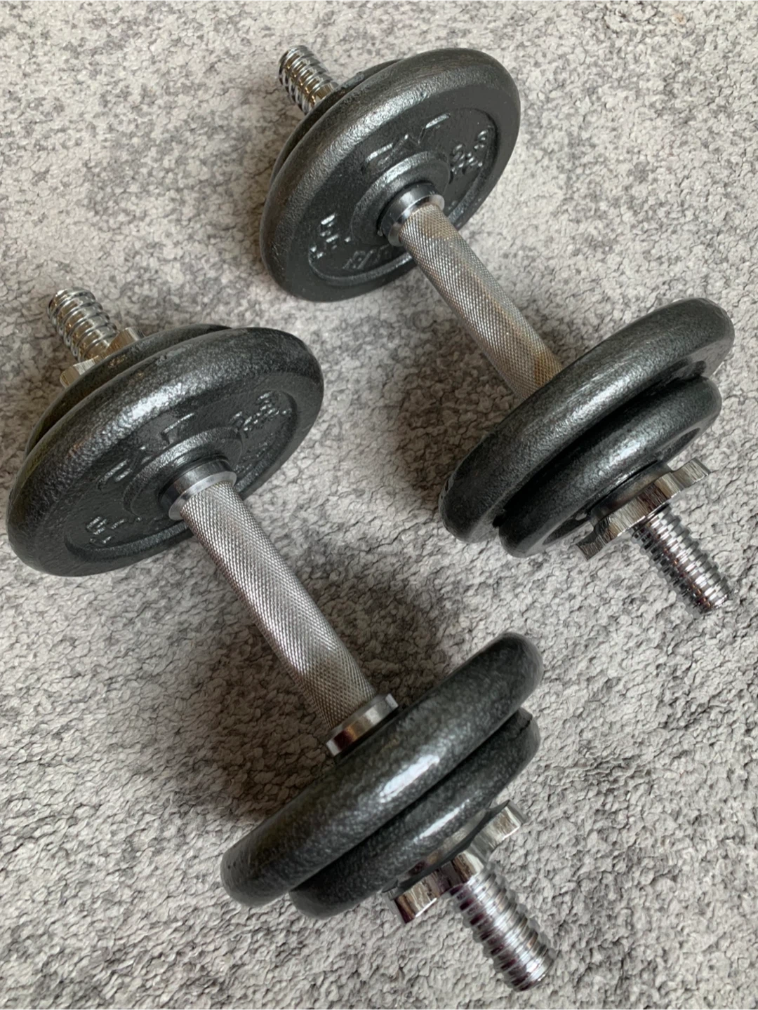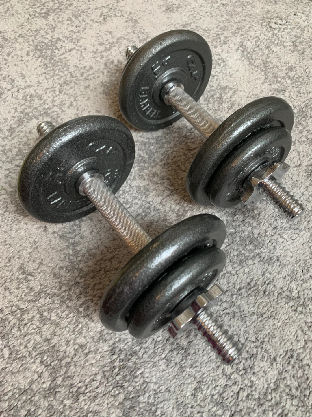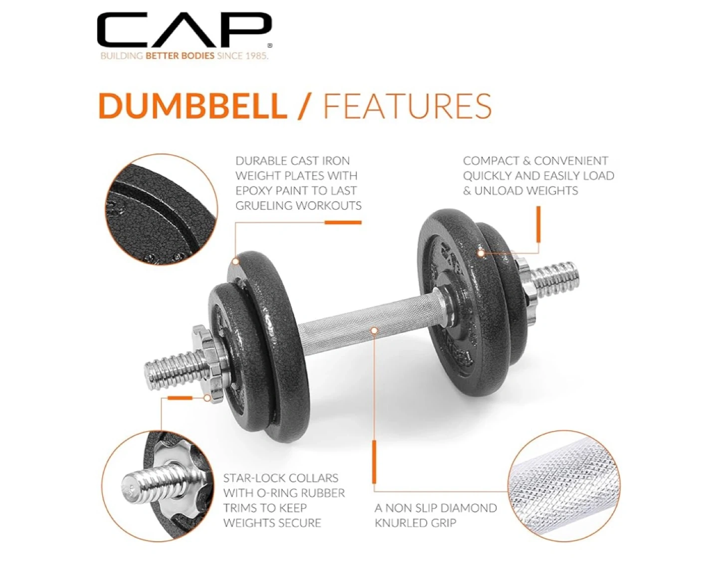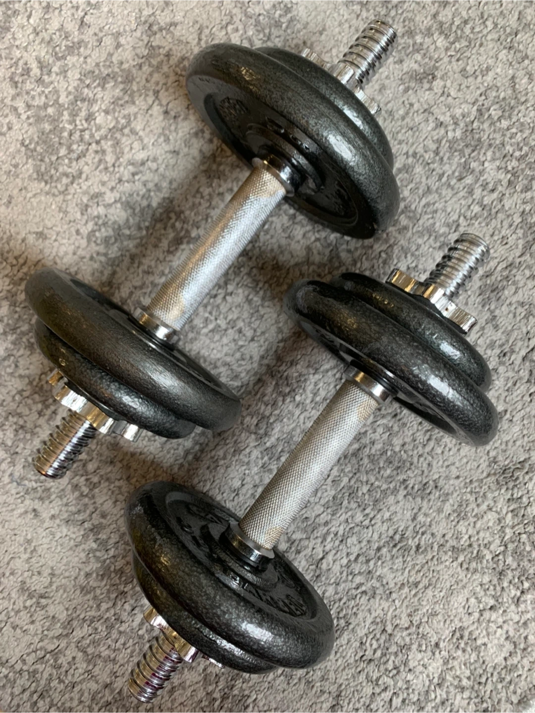 CAP 40 lb adjustable dumbbell set. Each dumbbell can be adjusted to your desired weight. Great for home workouts!