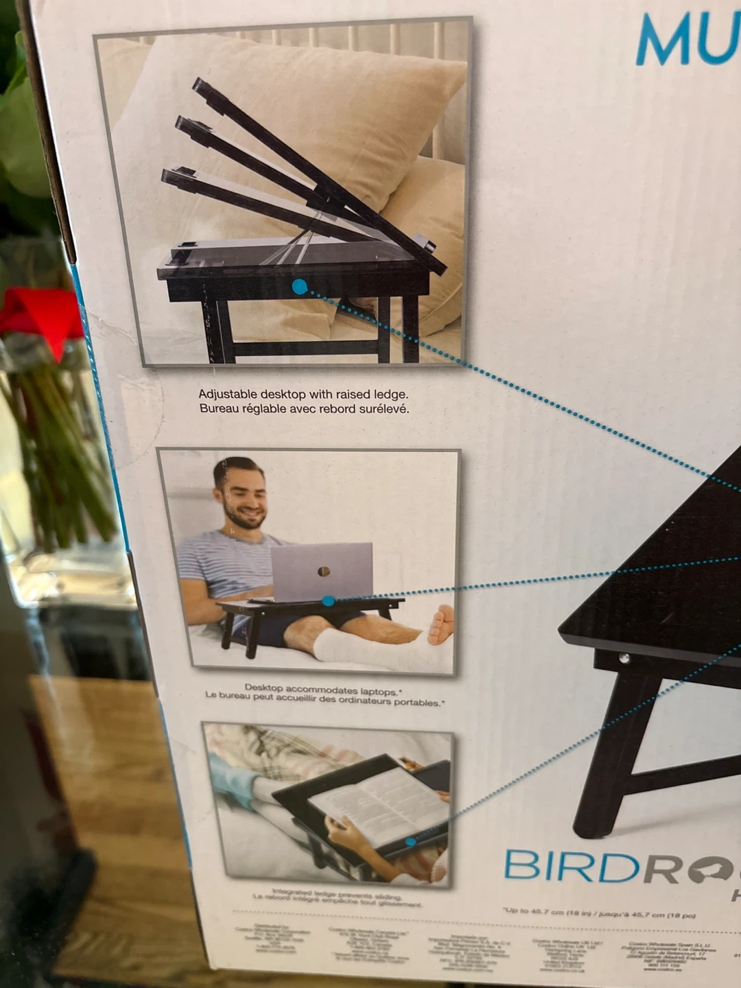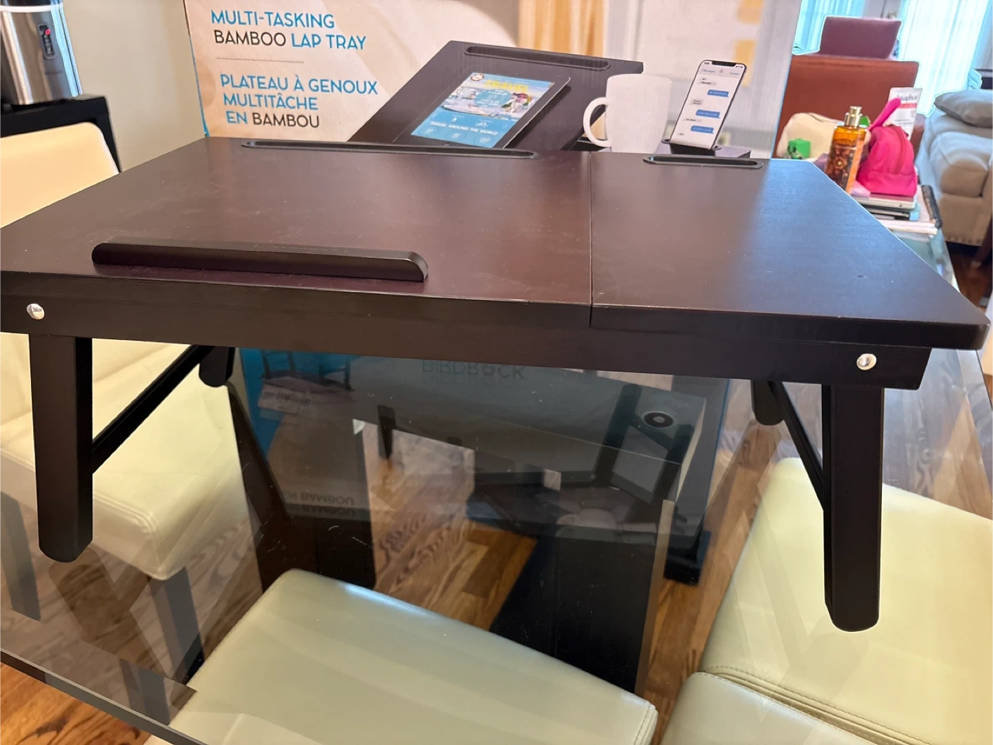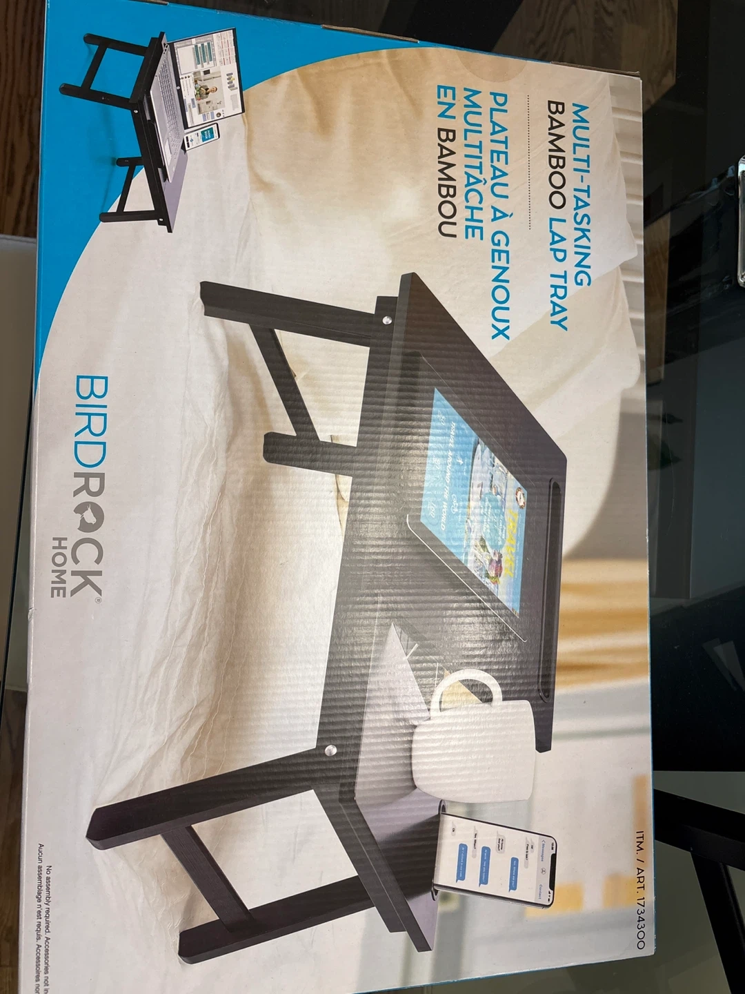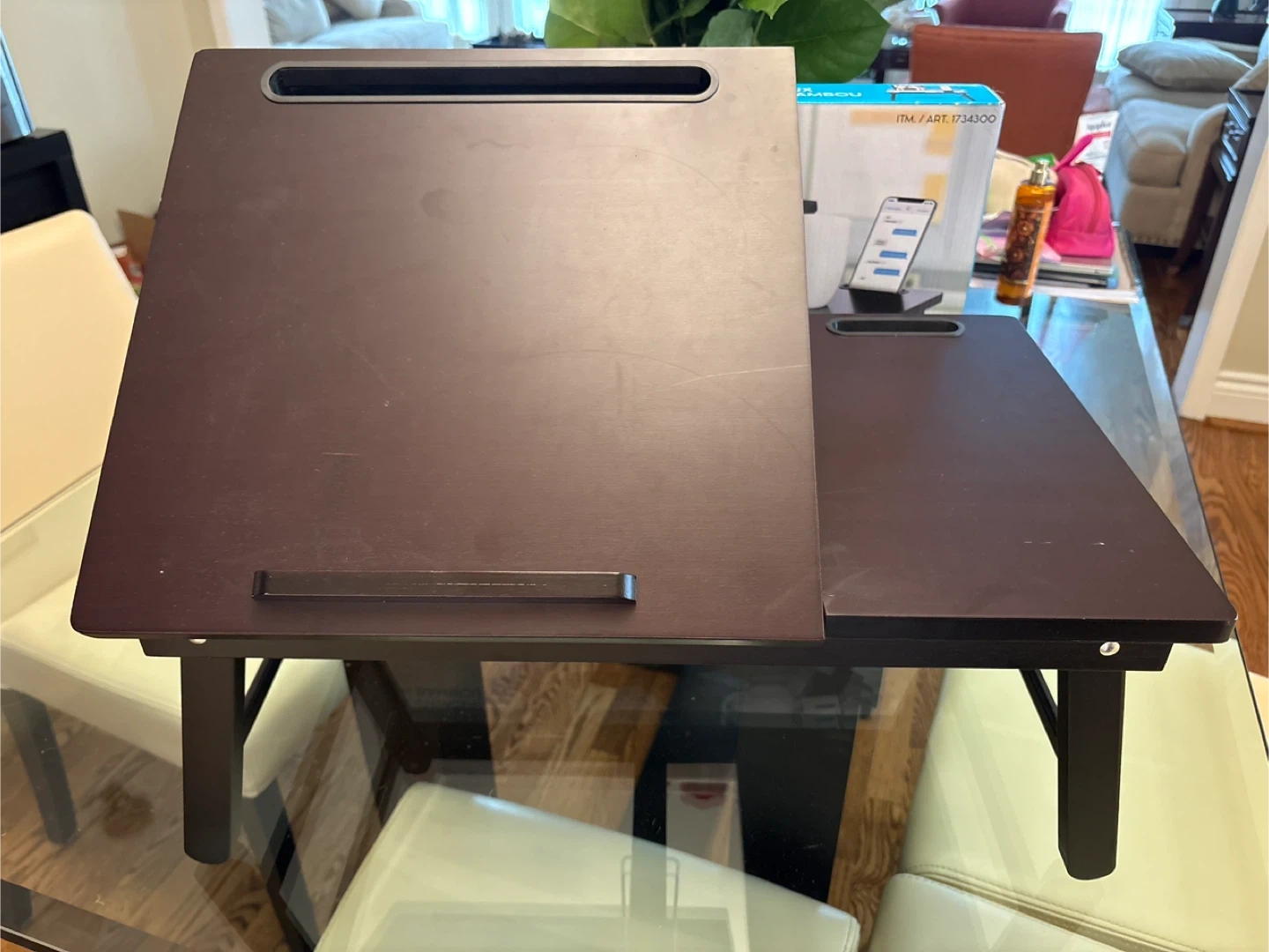 This multi-tasking lap tray from BirdRock Home is made of bamboo. It's great for using your laptop or tablet in bed or on the couch. The tray has adjustable height and tilt settings for comfort. I’m selling 2. One still in the box