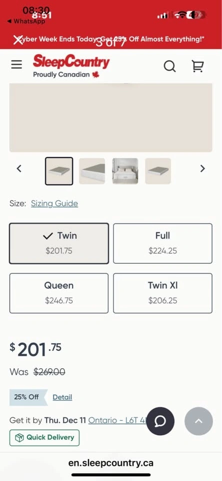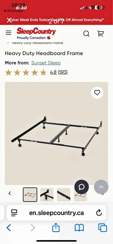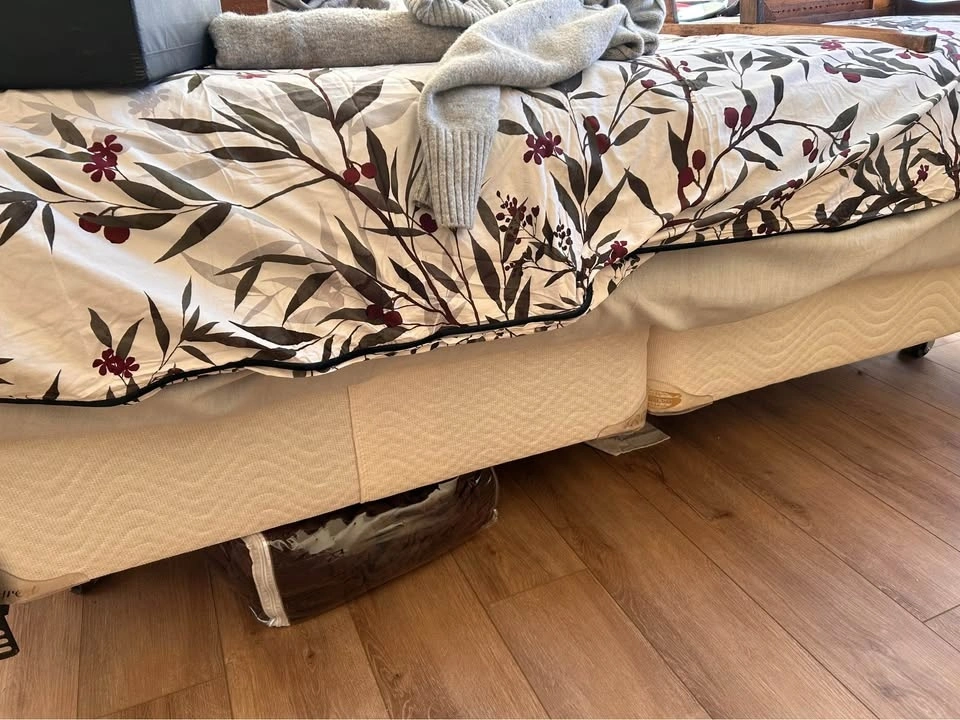 Super sturdy, heavy duty for king size bed with 2 twin boxspring. Has wheels so it's easy to move around. From SleepCountry, Sunset Sleep brand.