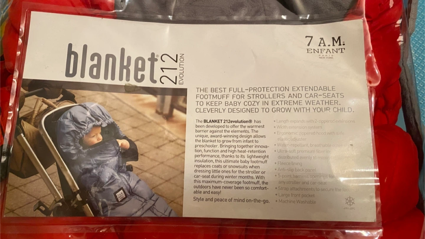 Keep your little one cozy in extreme weather with this 7 A.M. Enfant Blanket 212 Evolution footmuff! This blanket is designed to grow with your child, offering full protection for strollers and car seats. It features extendable length with 2-zippered extensions and a width extension system. The lightweight insulation replaces coats or snowsuits, bringing together innovation, function, and heat-retention performance. It's also water-repellent, breathable, and machine washable! Includes anti-slip back panel, 5-point harness openings, and a large front pocket.