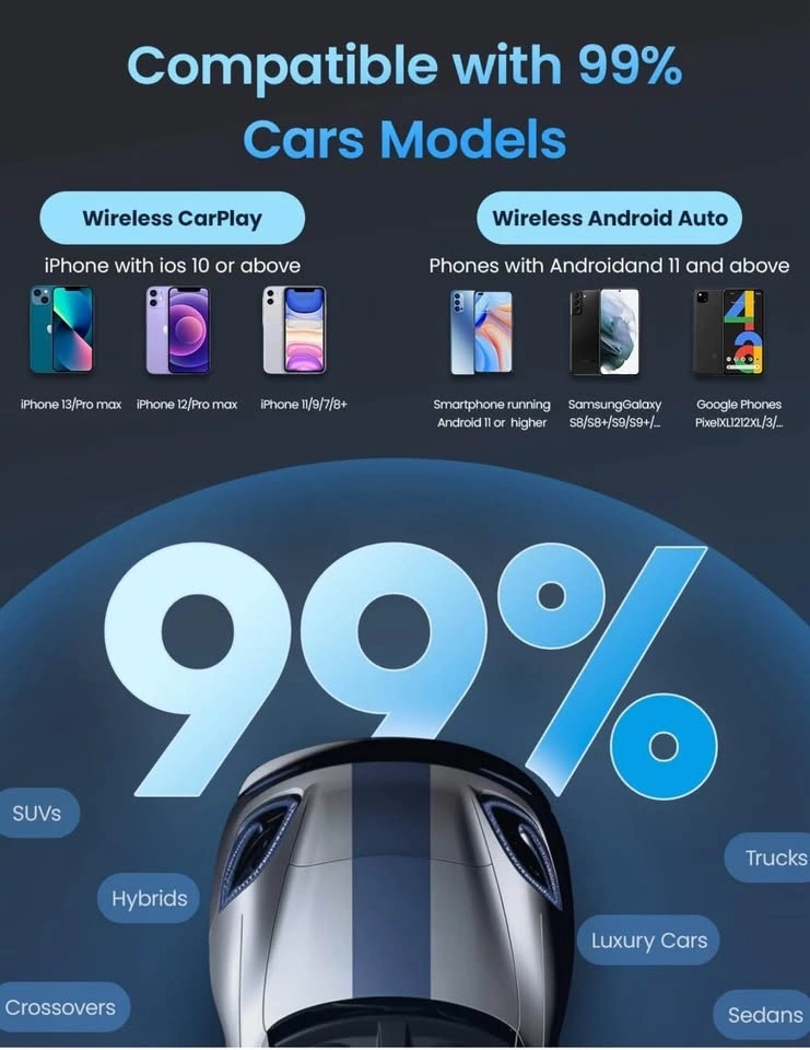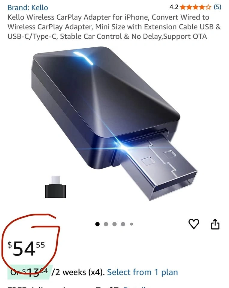 Kello Wireless CarPlay Adapter for iPhone and android, Convert Wired to Wireless CarPlay Adapter, Mini Size with Extension Cable USB & USB-C/Type-C, Stable Car Control & No Delay,Support OTA