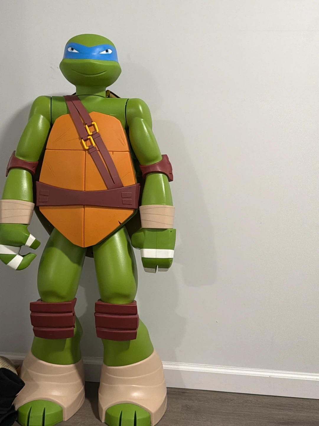 This is a large Teenage Mutant Ninja Turtles Leonardo action figure. It's made of plastic and features a detailed design. The figure has movable joints for posing.