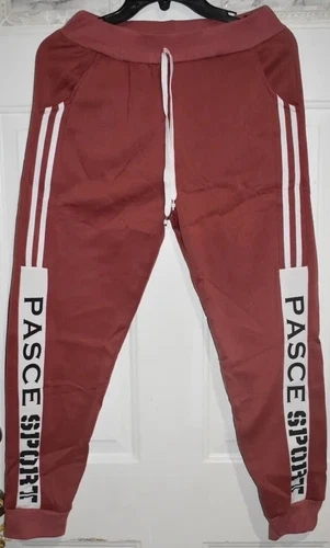 Comfortable women's sports pants in a rosewood color. Made from 95% polyester and 5% elastane for a good fit. Feel free to message if you have any questions!