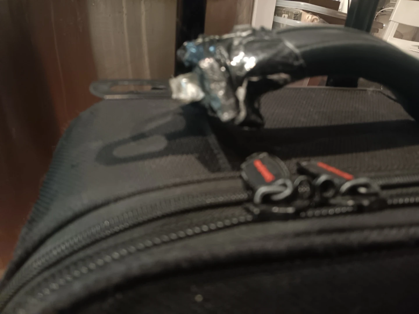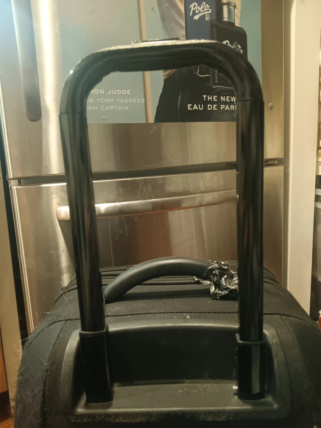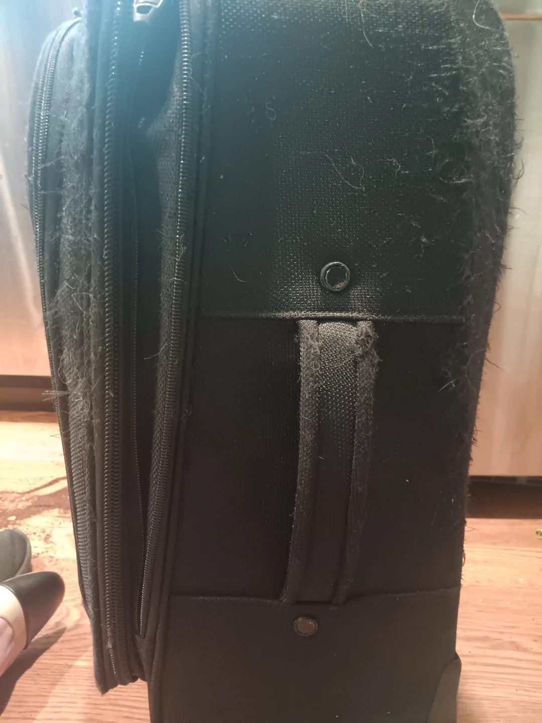 Please note the top handle is broken and come out of its socket. It is STILL usable. Wheels good. Handle works excellent. Inside roomy and fits many items.