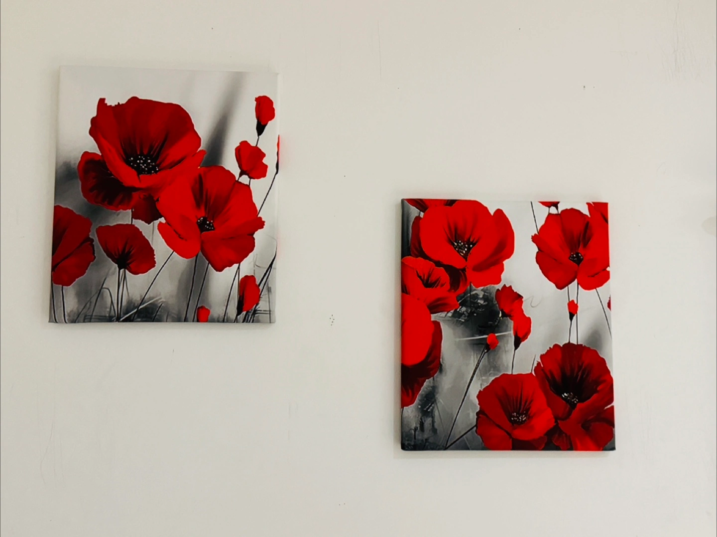 Two canvas prints featuring vibrant red poppy flowers on a neutral background