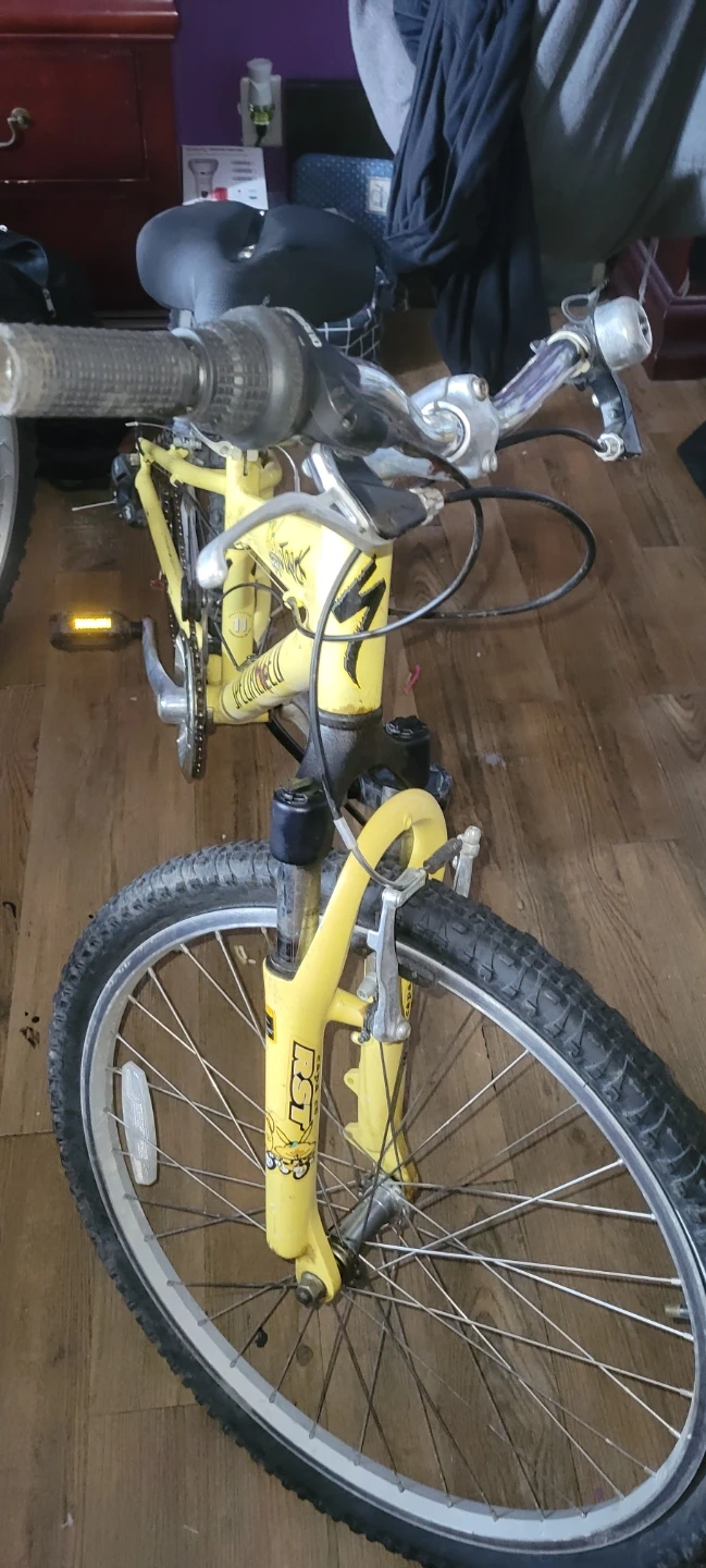 Yellow specialized hotrock gear bike. Its been sitting in my storage room for a couple years now and needs a wipe down but otherwise good condition. The wheels need to be pumped but i can do that for you before you bring it home.