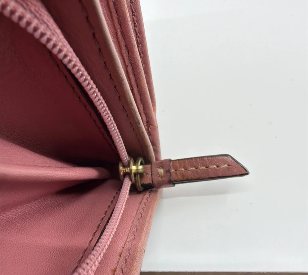 Coach Signature C Monogram Pink Leather Trifold Wallet