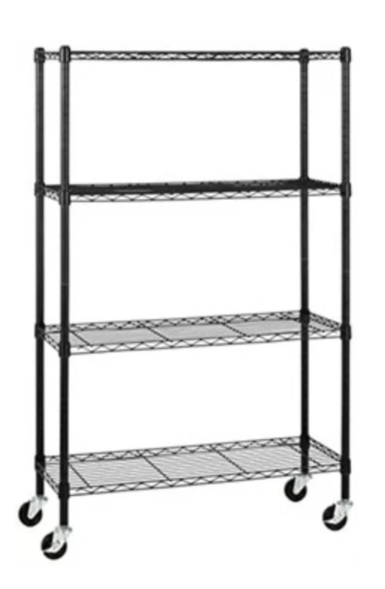 4-Shelf Black Wire Shelving Unit with Wheels