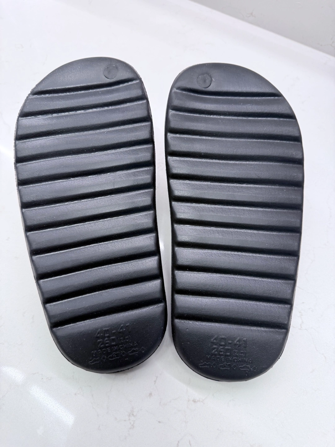 Selling a pair of black slides in size 40-41, which is approximately a US size 9-10. They are in great condition and ready for a new home! The soles have a textured pattern for grip.