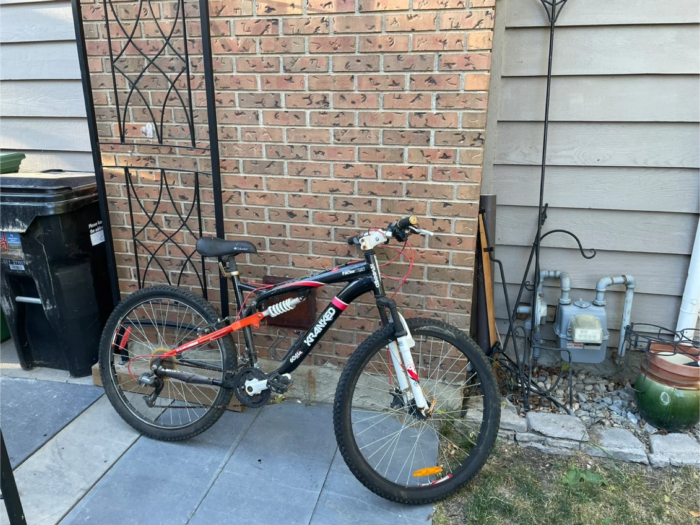 Selling a Kranked full suspension mountain bike. It's in good condition and ready for some off-road adventures! Features a sturdy frame and responsive suspension for a smooth ride on any terrain