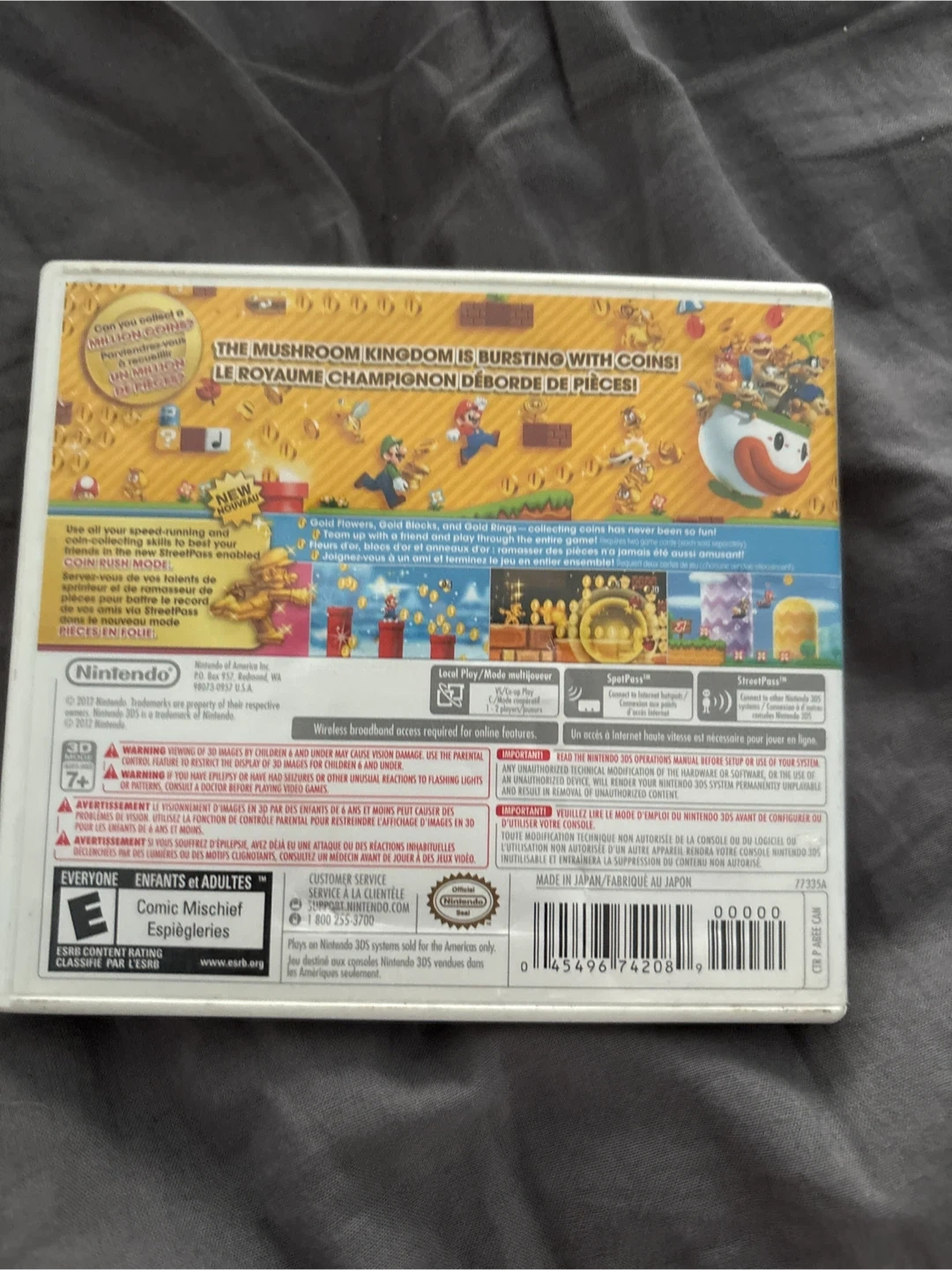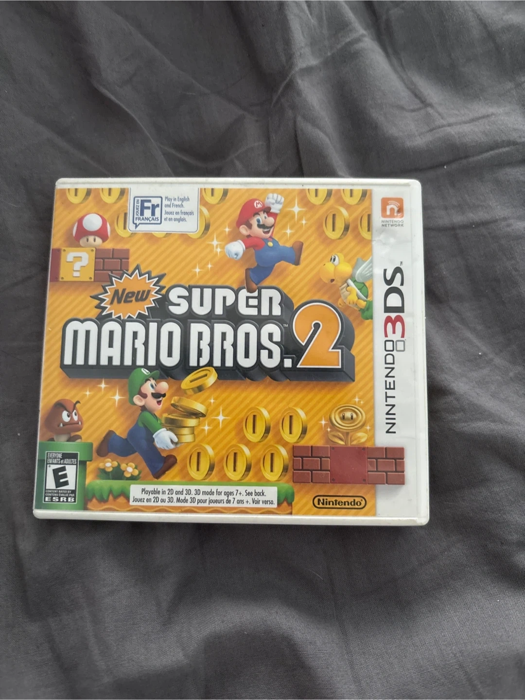 This is the New Super Mario Bros. 2 game for the Nintendo 3DS. It's rated E for Everyone and includes the game cartridge and manual. This game offers a fun coin-collecting adventure with Mario and Luigi!