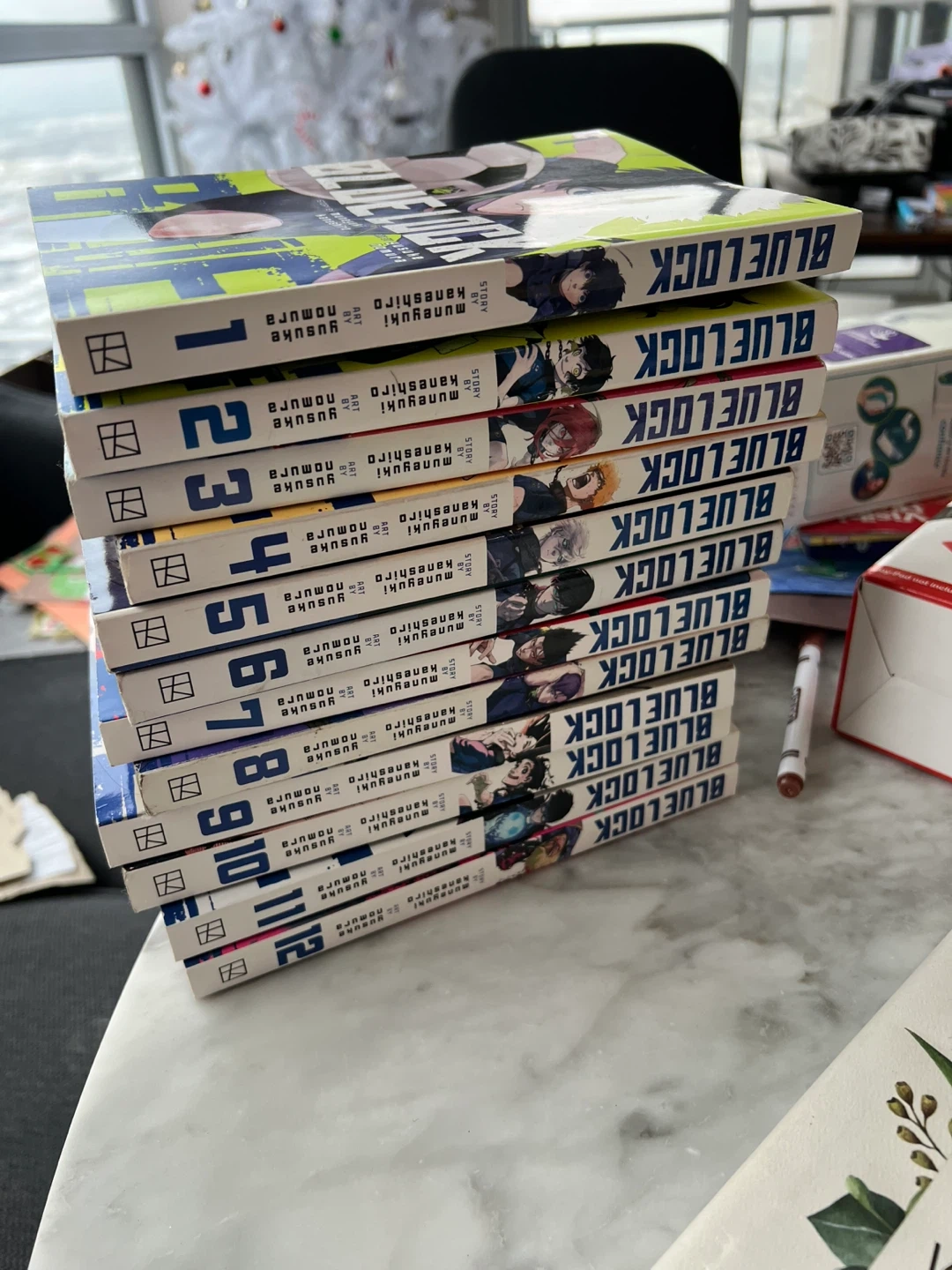 Selling volumes 1-12 of the Blue Lock manga series! They're in great shape and ready for a new reader to enjoy the exciting soccer story by Muneyuki Kaneshiro and Yusuke Nomura