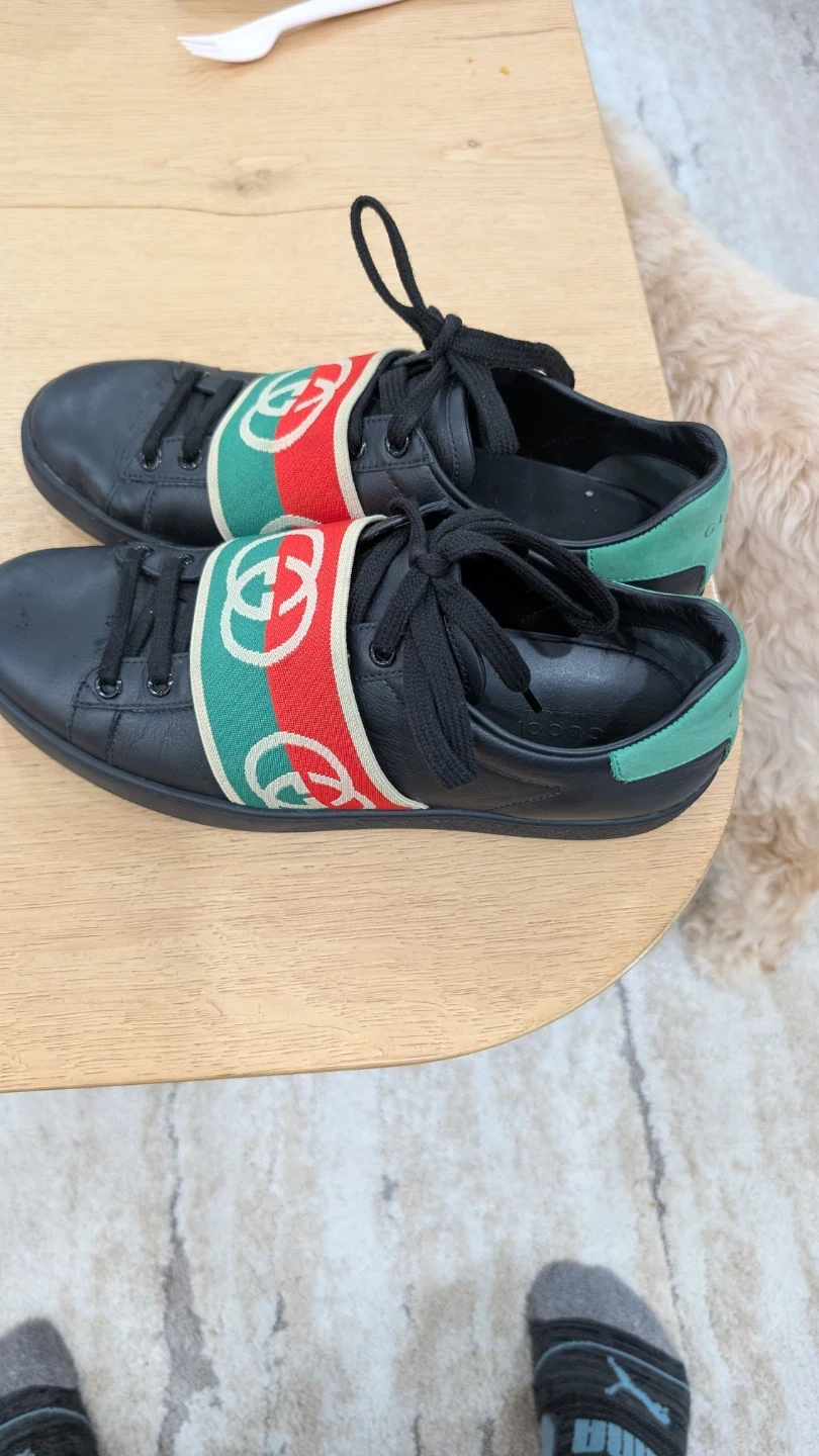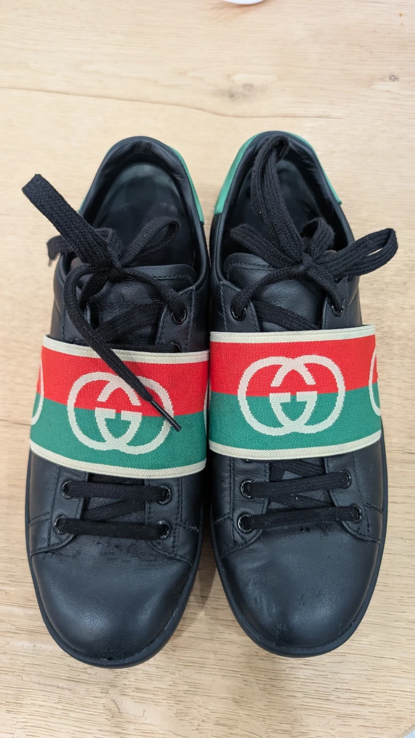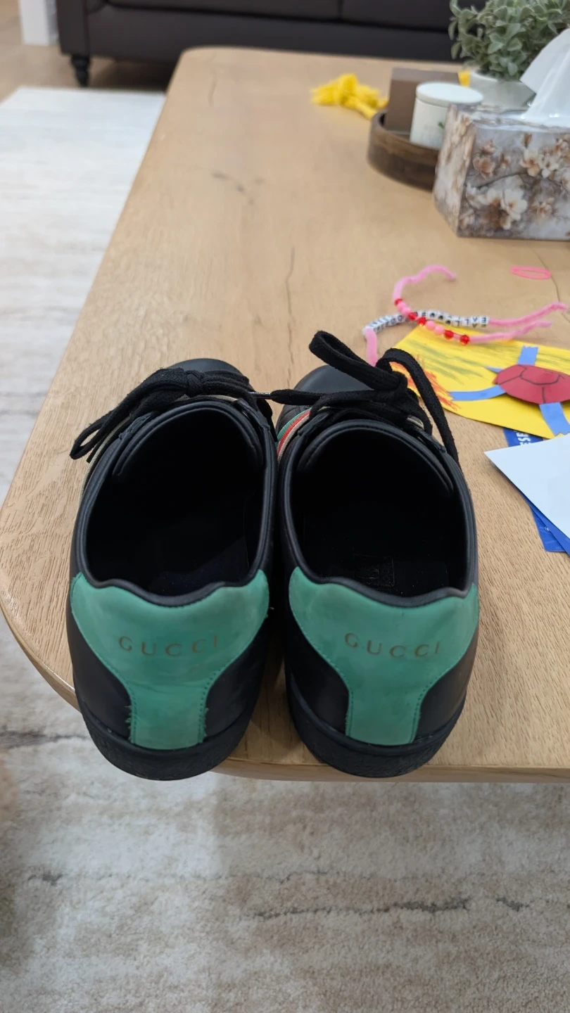 Gucci Black Leather Sneakers with Red Green Stripe