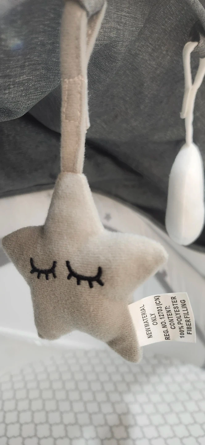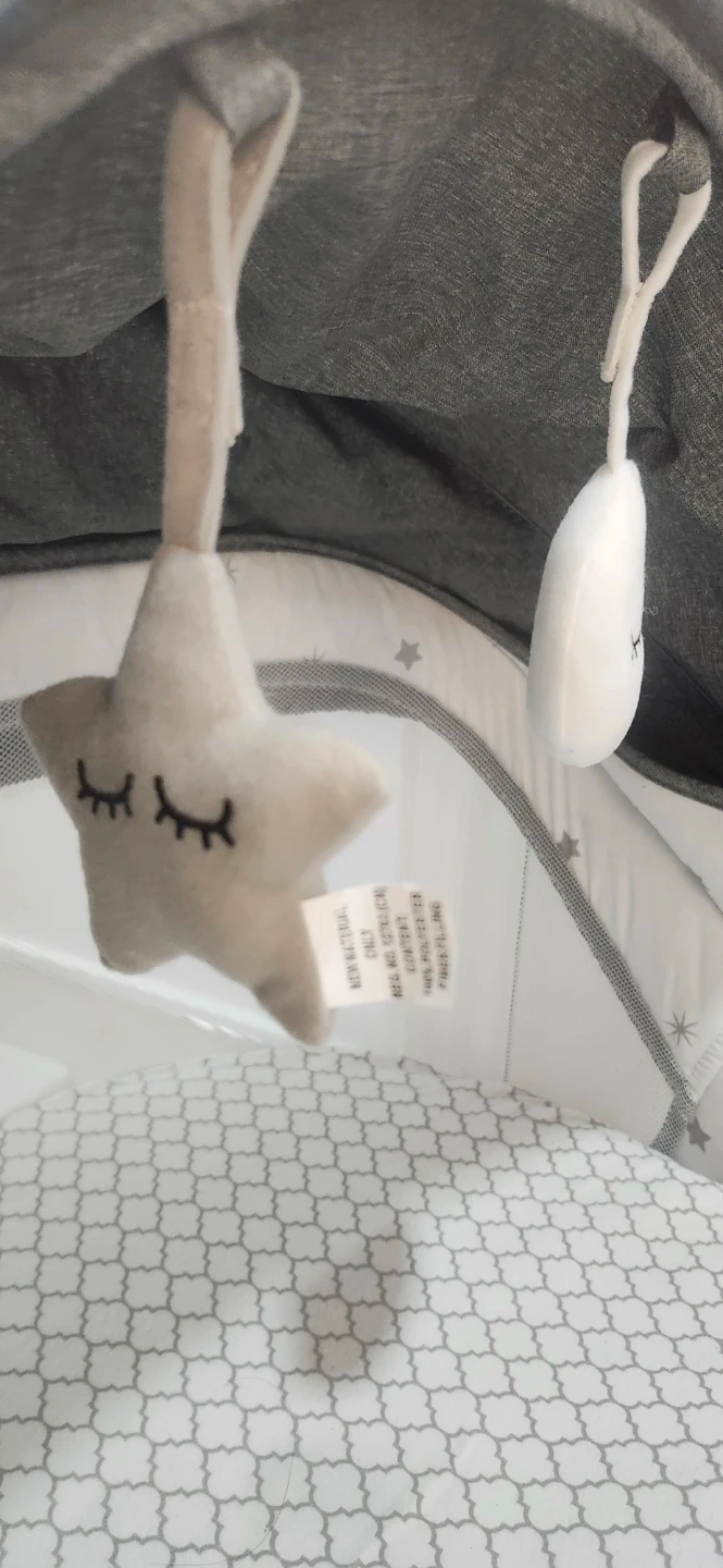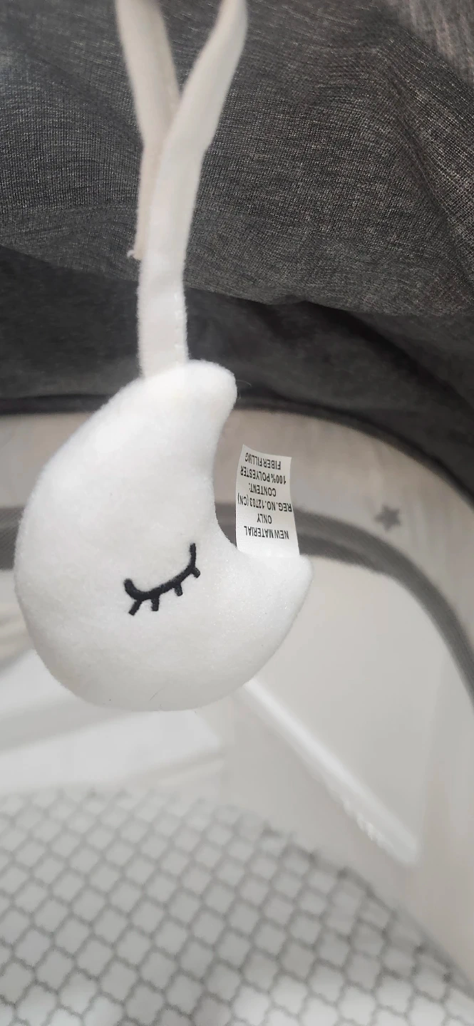 This is a BebeRoad travel bassinet and co-sleeper, perfect for naps on the go. It includes a mosquito net and hanging plush toys. The main material is polyester.