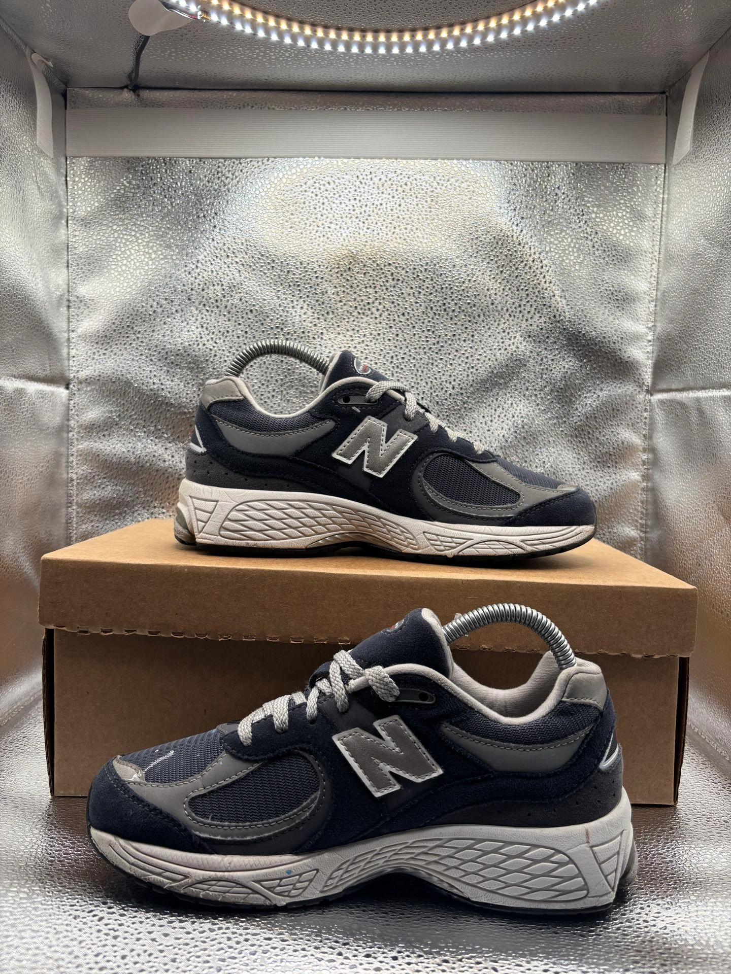 Size 5y. Good condition with a flaw. Comes with a replacement box. Let me know with any questions.