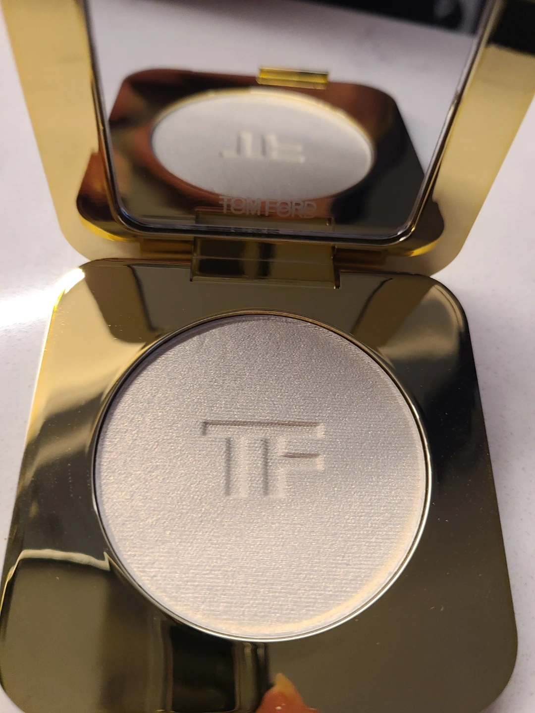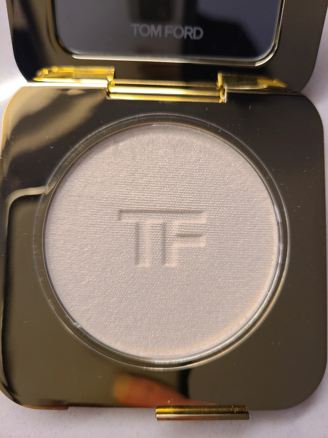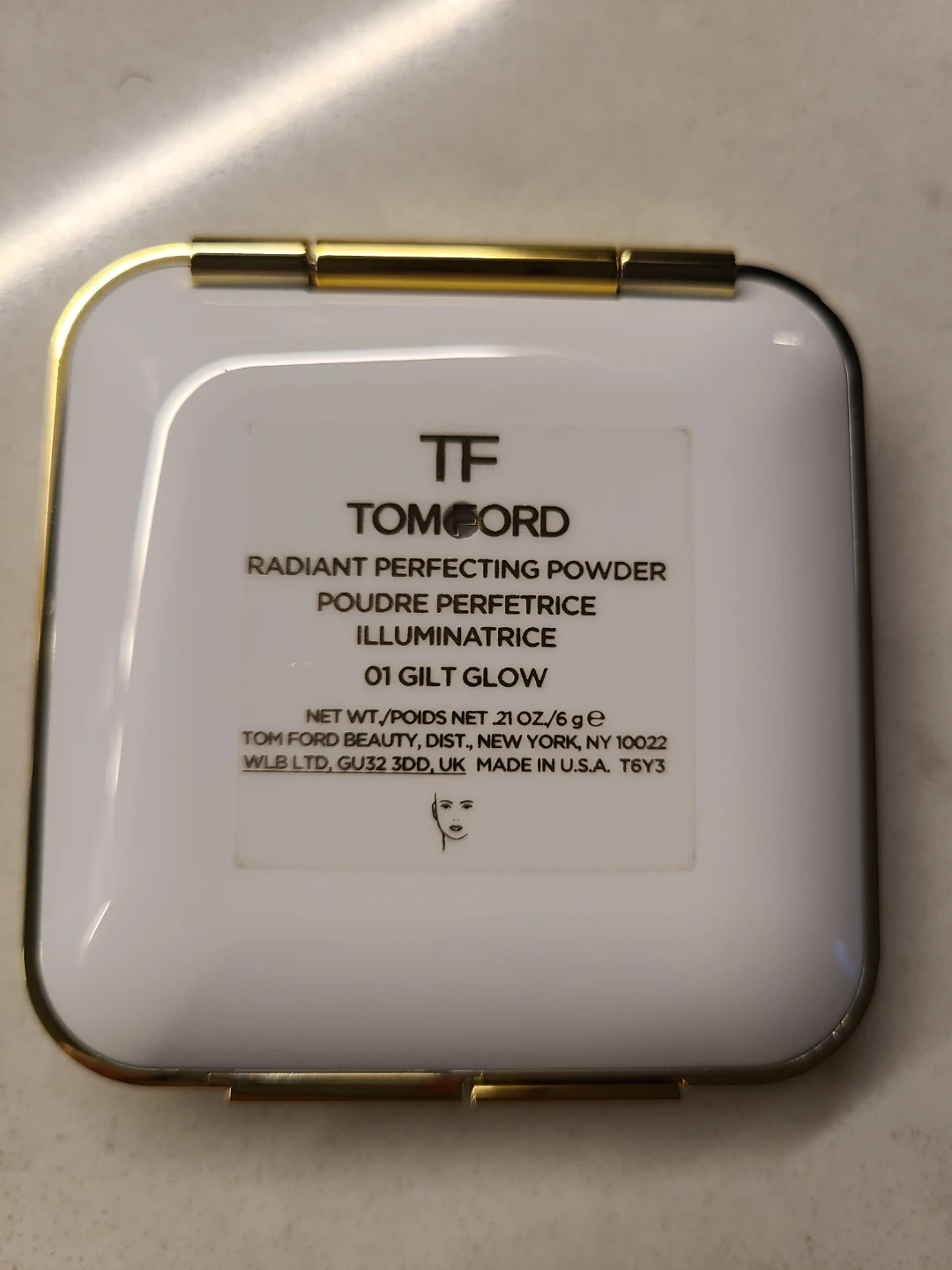Tom Ford Radiant Perfecting Powder in shade 01 Gilt Glow. Compact includes a mirror. Net wt. 21 oz / 6 g.