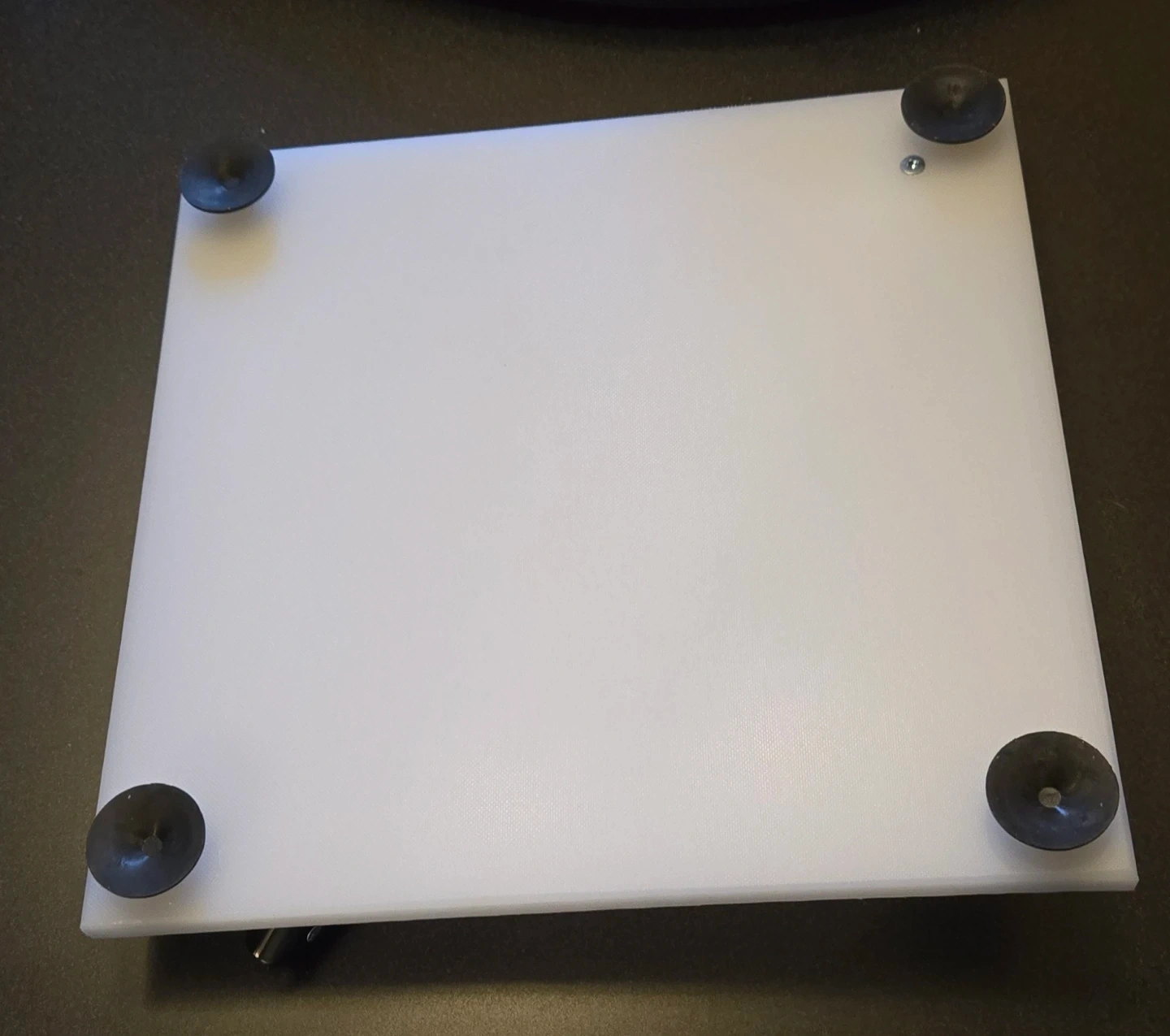 This cutting board has a pivot knife that's mounted on four suction cups. It's made of plastic and measures 12 x 12 inches. This set is great for slicing things at 90-degree angles!