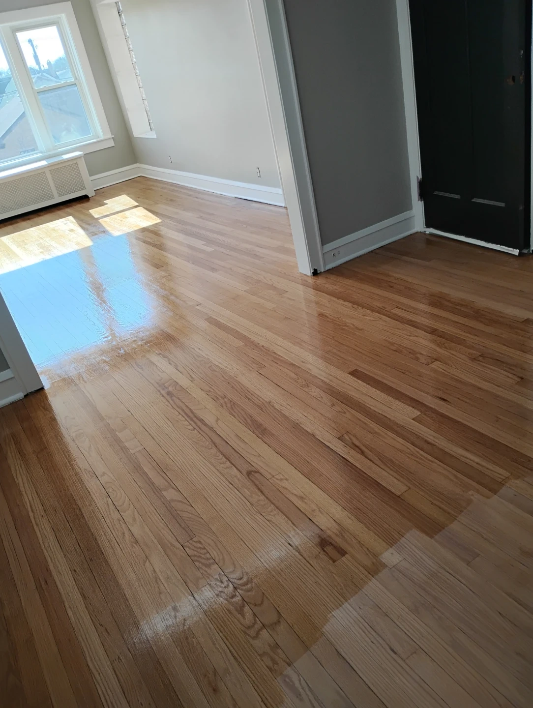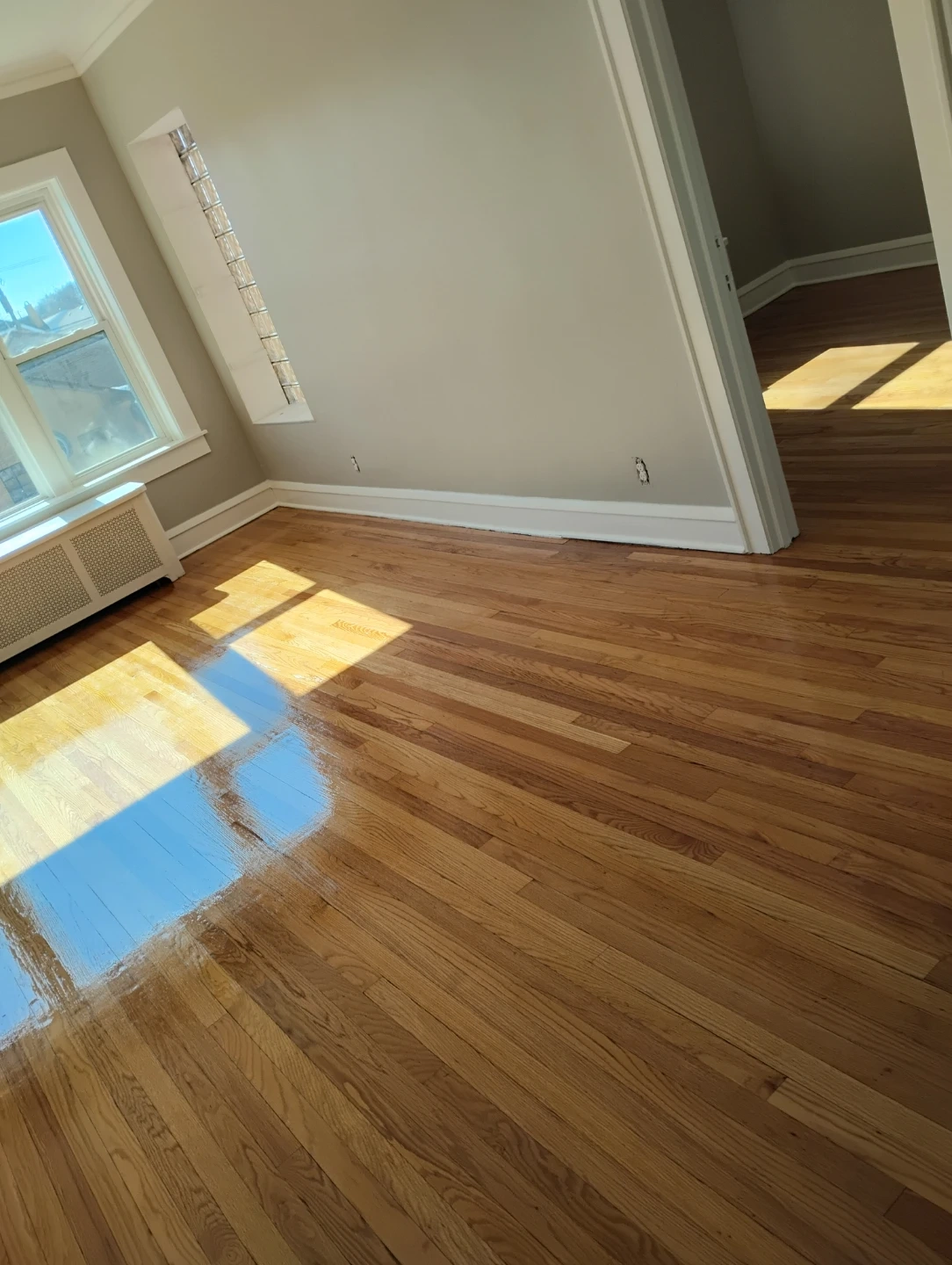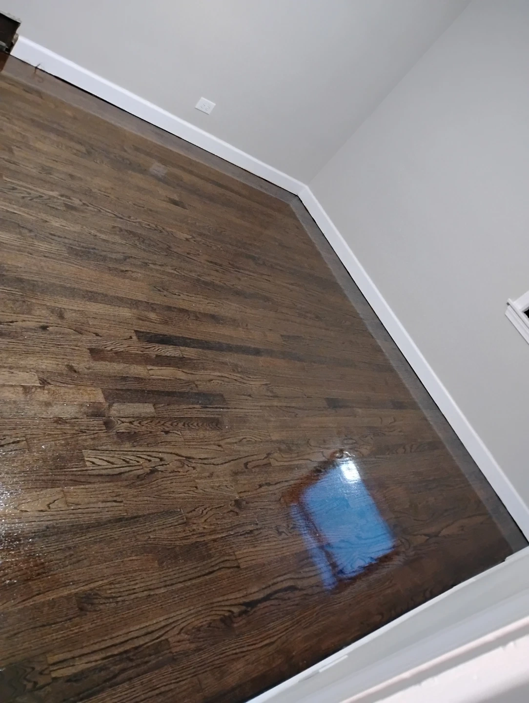 Professional hardwood floor refinishing. It's a beautiful transformation for your home. We sand, stain, and seal to restore the natural beauty of your wood floors. Get a fresh, new look!