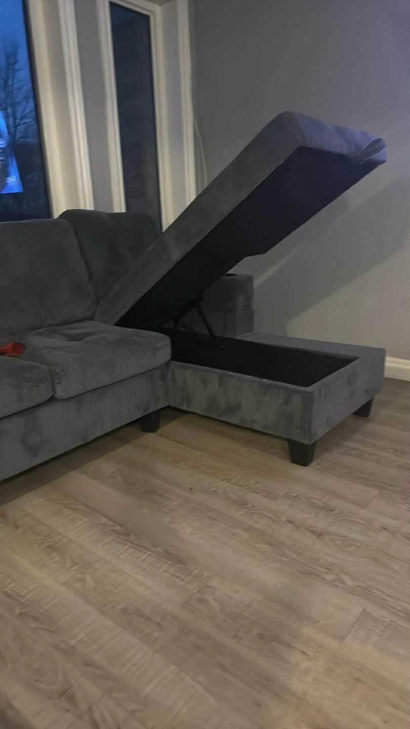 Grey Corduroy Sectional Sofa with Cupholders