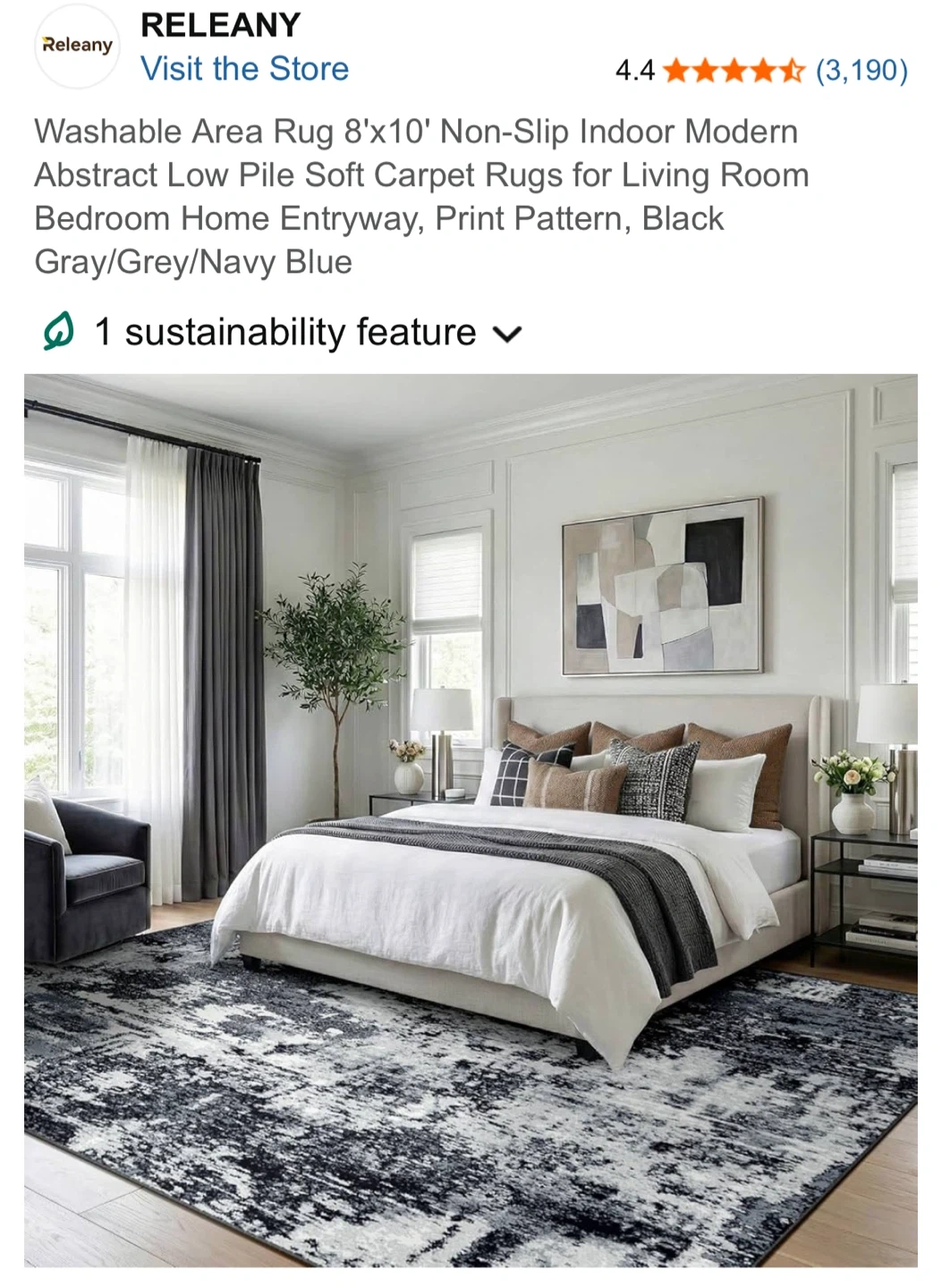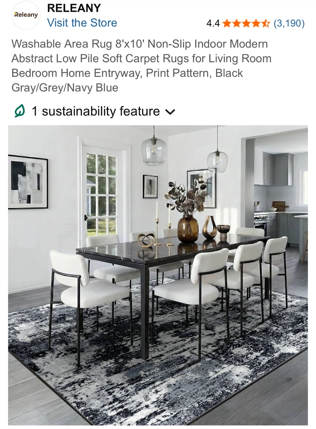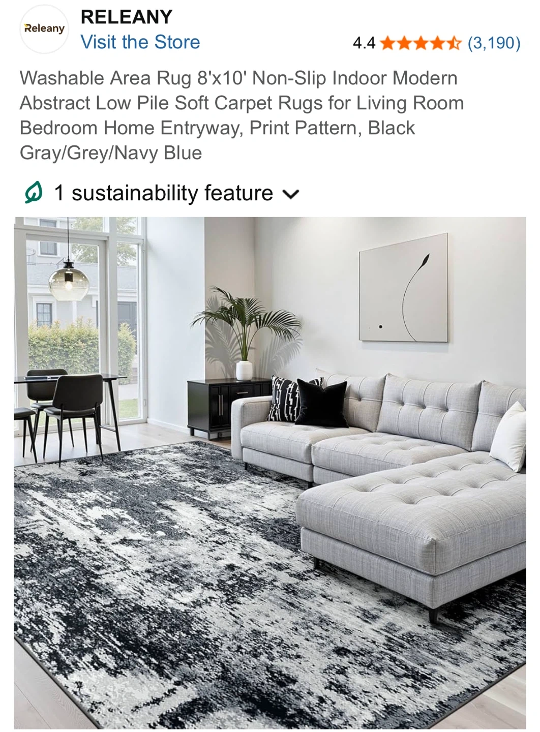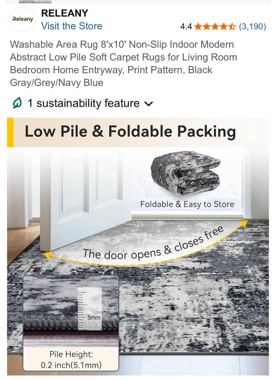 This washable area rug features a modern abstract print. It's non-slip and low pile, making it easy to clean with a vacuum. The rug is foldable for convenient storage and transport.