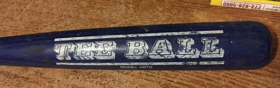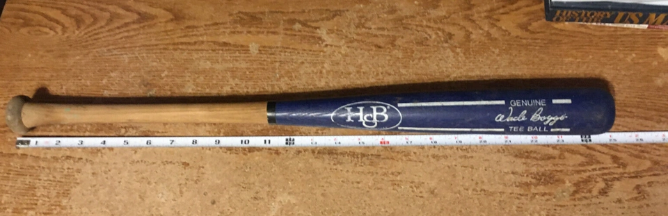 vintage Wade boggs Used tee ball bat. Wooden handle, blue barrel. Shows wear from use. Model HTB. early '90s I used it from 91 to 92. 24 and a half 25 in long pick up at house