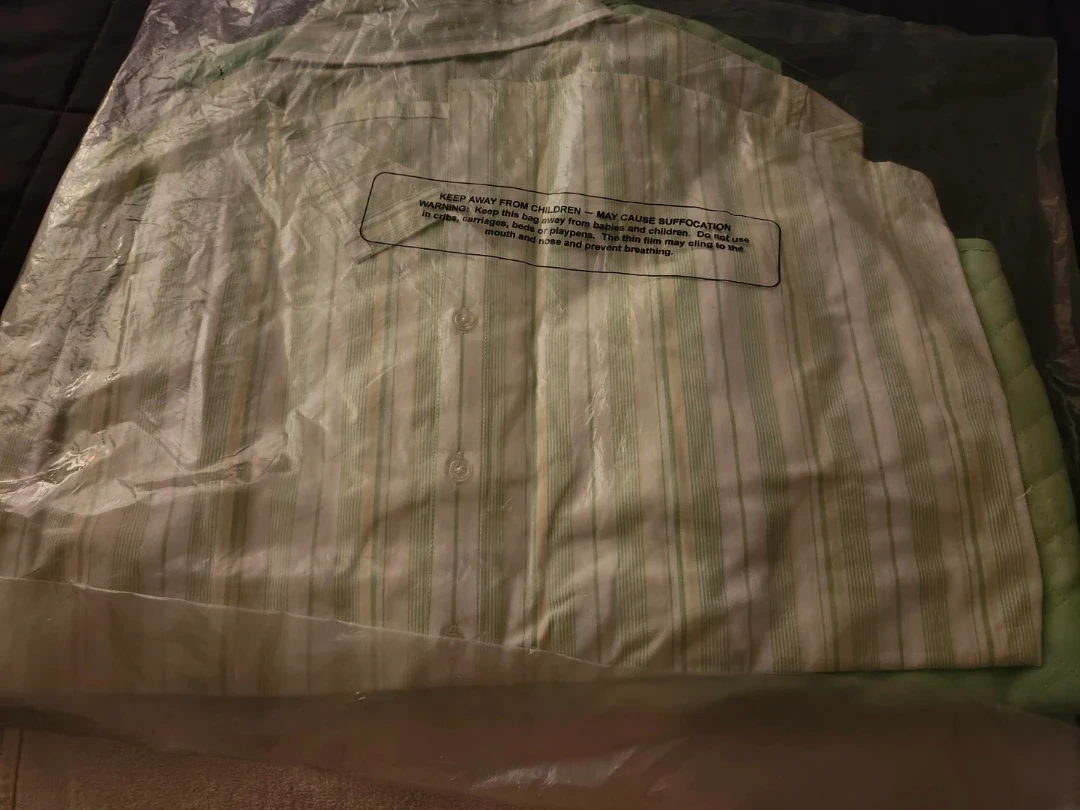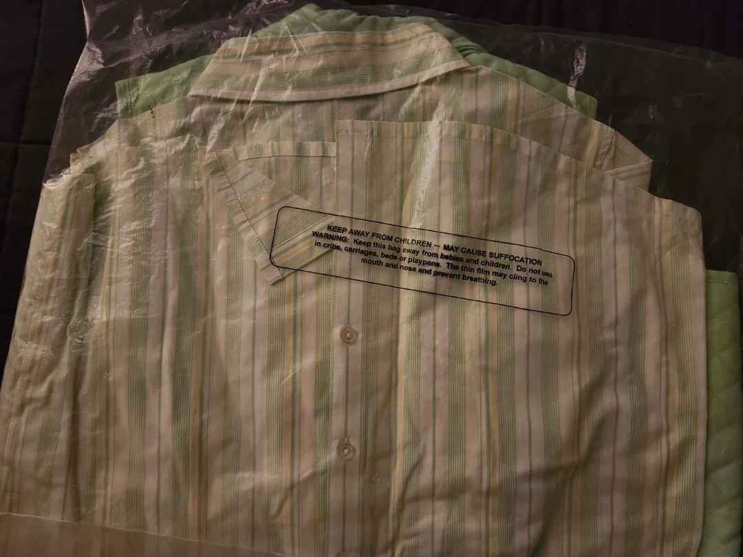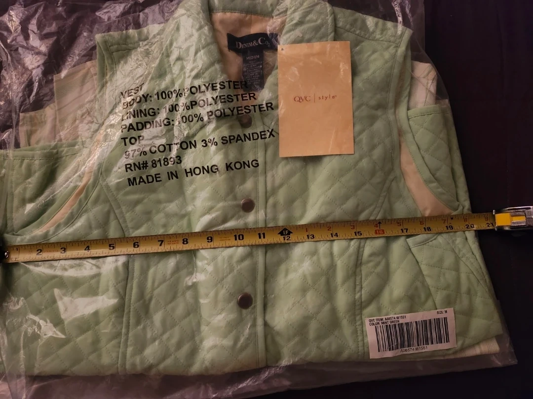 NEW IN FACTORY BAG, 2 PIECE SET. 1 GREEN POLY-FILLED VEST, 1 GREEN & WHITE PINSTRIPE SHIRT. Says medium but runs large. See ALL photos. Pit to pit approx. 19". NO halfprice or lowballs. Seller responds evenings. Local pickup.