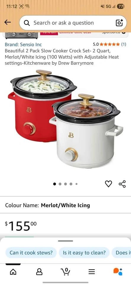 Brand New Beautiful 2qt Slow Cookers (2-Piece Set, Red/Whit