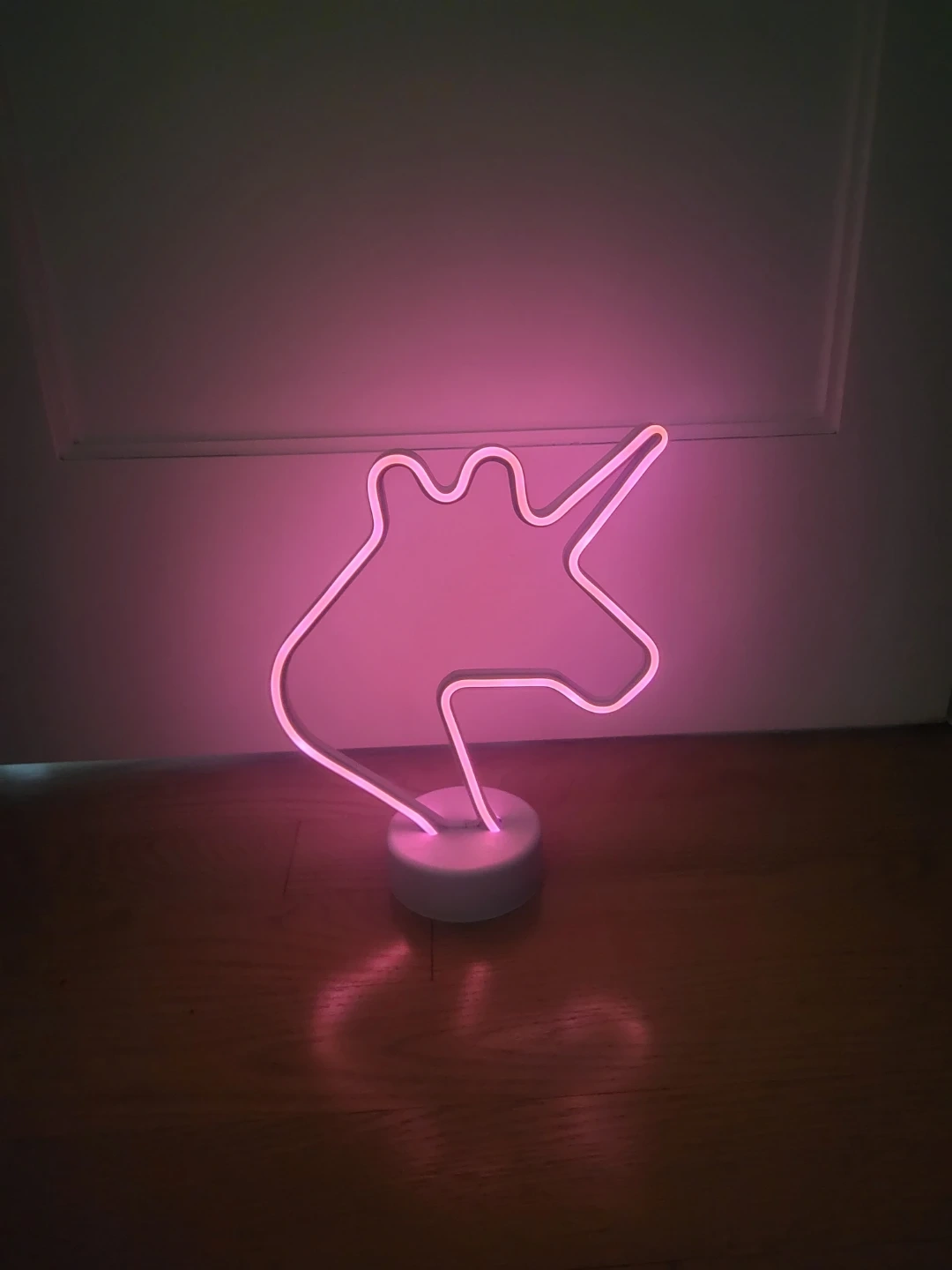 Add a touch of whimsy to any room with this adorable pink unicorn neon light! It's in great condition and emits a soft, warm glow, perfect for a night light or decorative piece