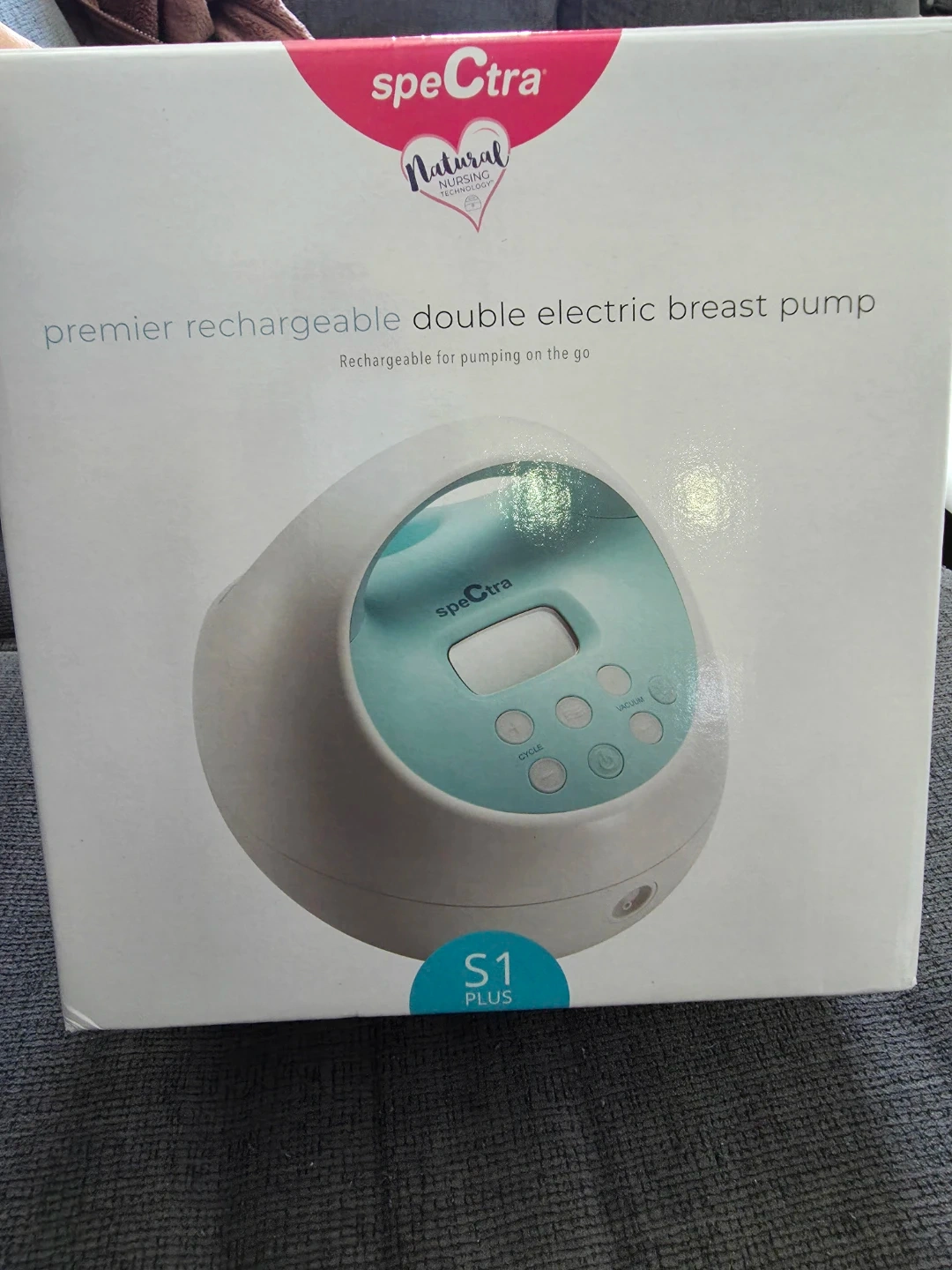 Spectra S1 Plus Premier Rechargeable Double Electric Breast Pump. This double electric breast pump is rechargeable for pumping on the go. Includes all parts shown in packaging. New unused open box