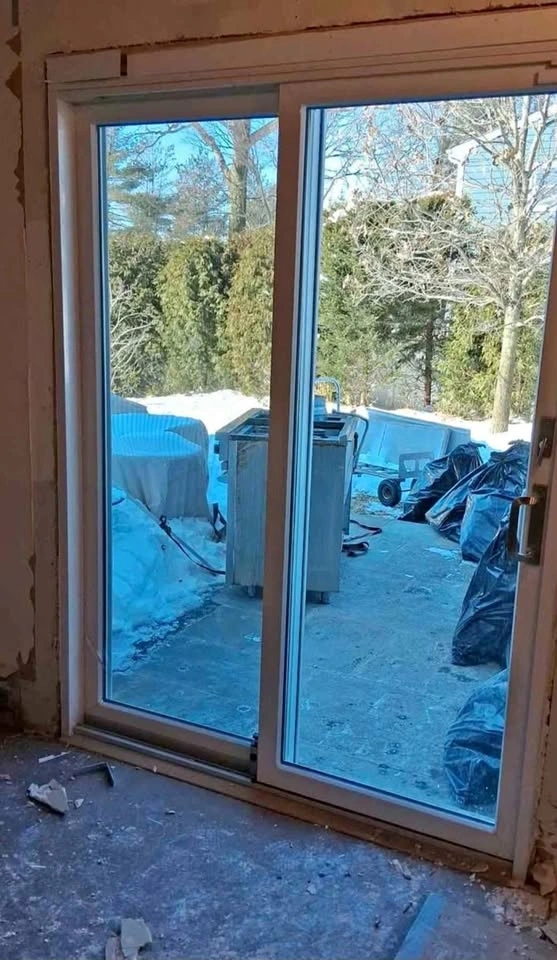 Great sliding patio door. Door is 60 inches wide and 80 inches tall. Two panels, one slides. Good for letting in natural light. It comes with screen.