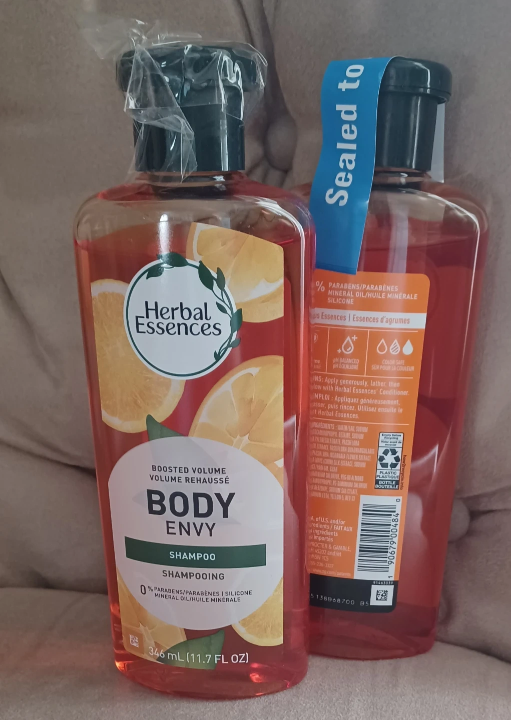 Herbal Essences Body Envy shampoo for boosted volume. It's 0% parabens, silicone, or mineral oil. Citrus essences for a refreshing scent. 346 mL (11.7 FL OZ) bottle.