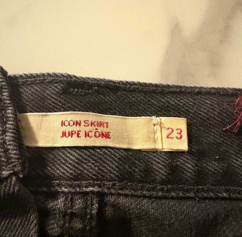 Levi’s Icon Skirt in dark grey denim. Size 23. Classic Levi Strauss & Co. patch on the back. Great condition and perfect everyday mini skirt. (It doesn’t have shorts under!) Used once only.