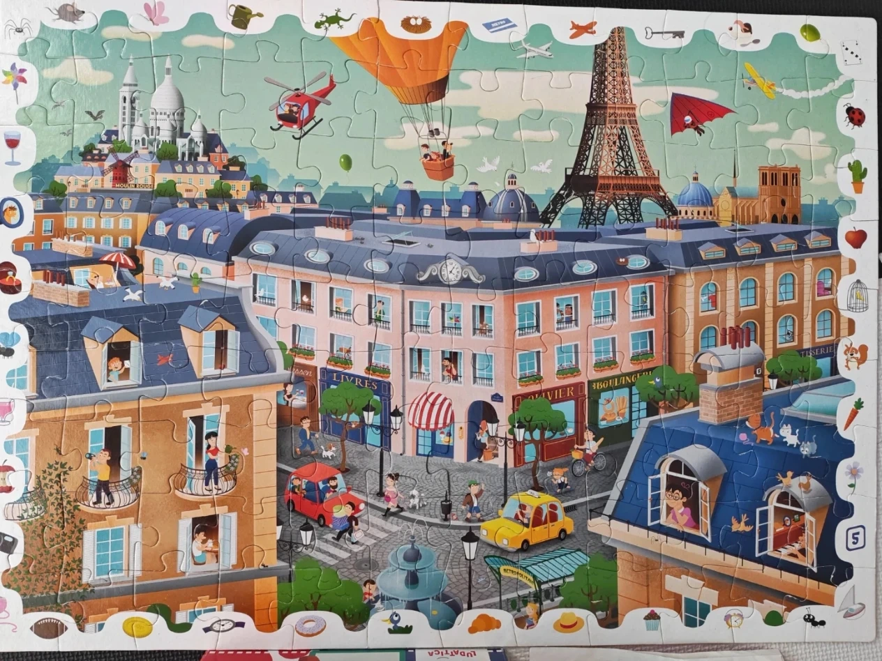 This LUDATTICA Detective Puzzle "The City" offers a charming Parisian scene with iconic landmarks like the Eiffel Tower. It's a fun and engaging puzzle for kids and adults alike! Perfect for a rainy afternoon or family game night.