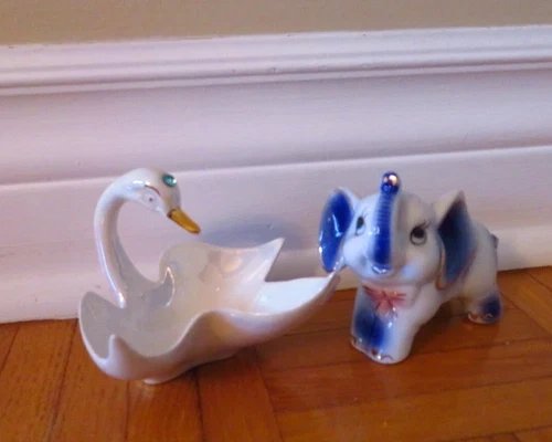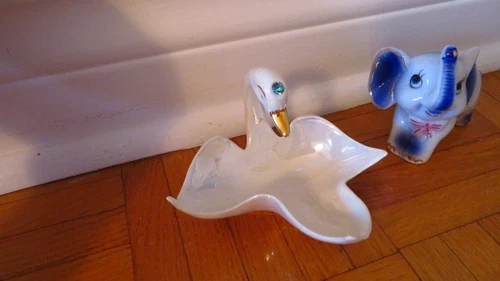 Vtg Cute Swan & Elephant Figurine - Italy/Japan