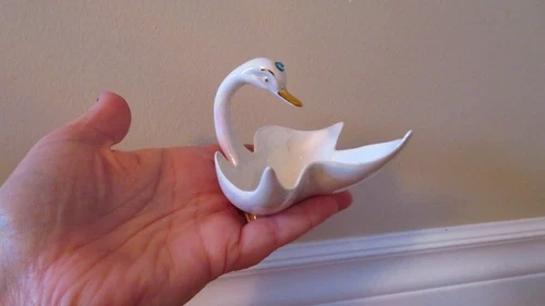 Crafted with meticulous attention to detail, these vintage swan and elephant figurines are charming pieces that exude elegance and grace. Originating from Italy, the swan figurine is a testament to the rich tradition of ceramic artistry. Its delicate features and the carefully molded swan body. The elephant trunk up pose evokes a sense of serenity and good luck, making it a delightful addition to any collection or home decor.