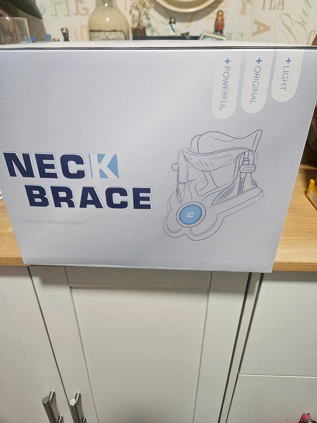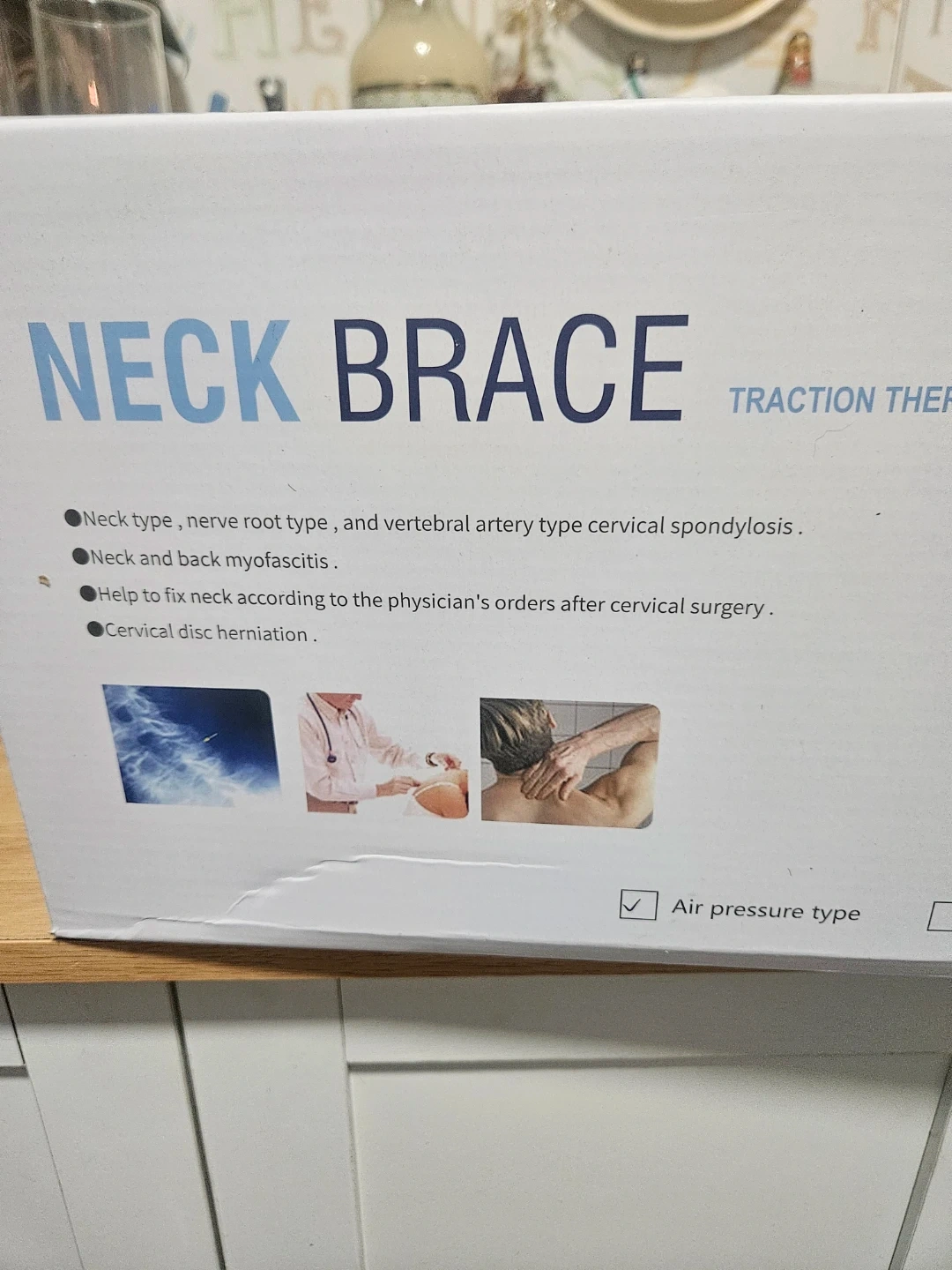 This is a neck brace for traction therapy. It's designed for neck and back myofascitis and helps to fix the neck after surgery. This is an air pressure type device. WAS @-$-120