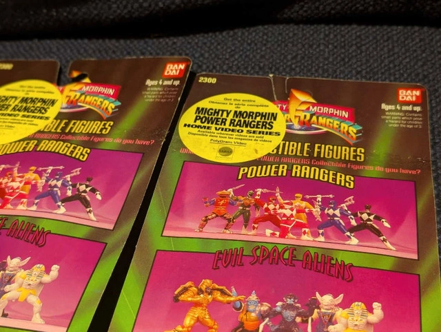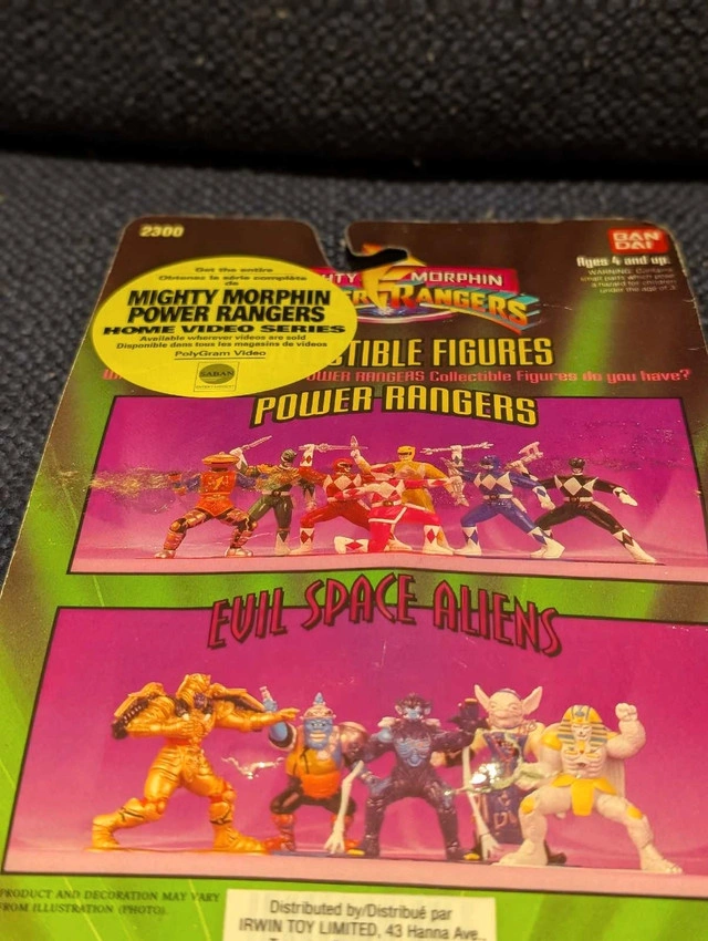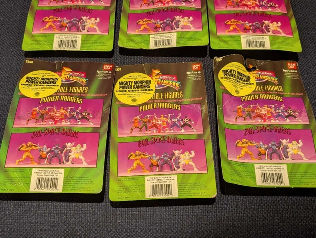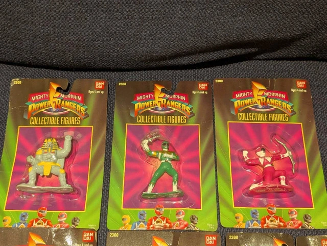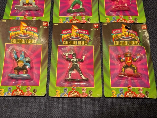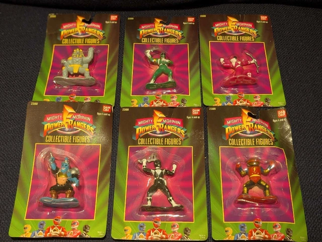 Set of 6 vintage Mighty Morphin Power Rangers collectible figures from 1993 – all sealed in their original packaging for true collectors! Includes Green Ranger, Black Ranger, Pink Ranger, Alpha, King Sphinx, and Squatt. Each figure remains sealed in its original 1993 Bandai package. Packaging shows some wear from long-term storage, including minor fading, glue residue, and morphed boxes. Figures inside are untouched and in perfect condition. Check out my other listings!