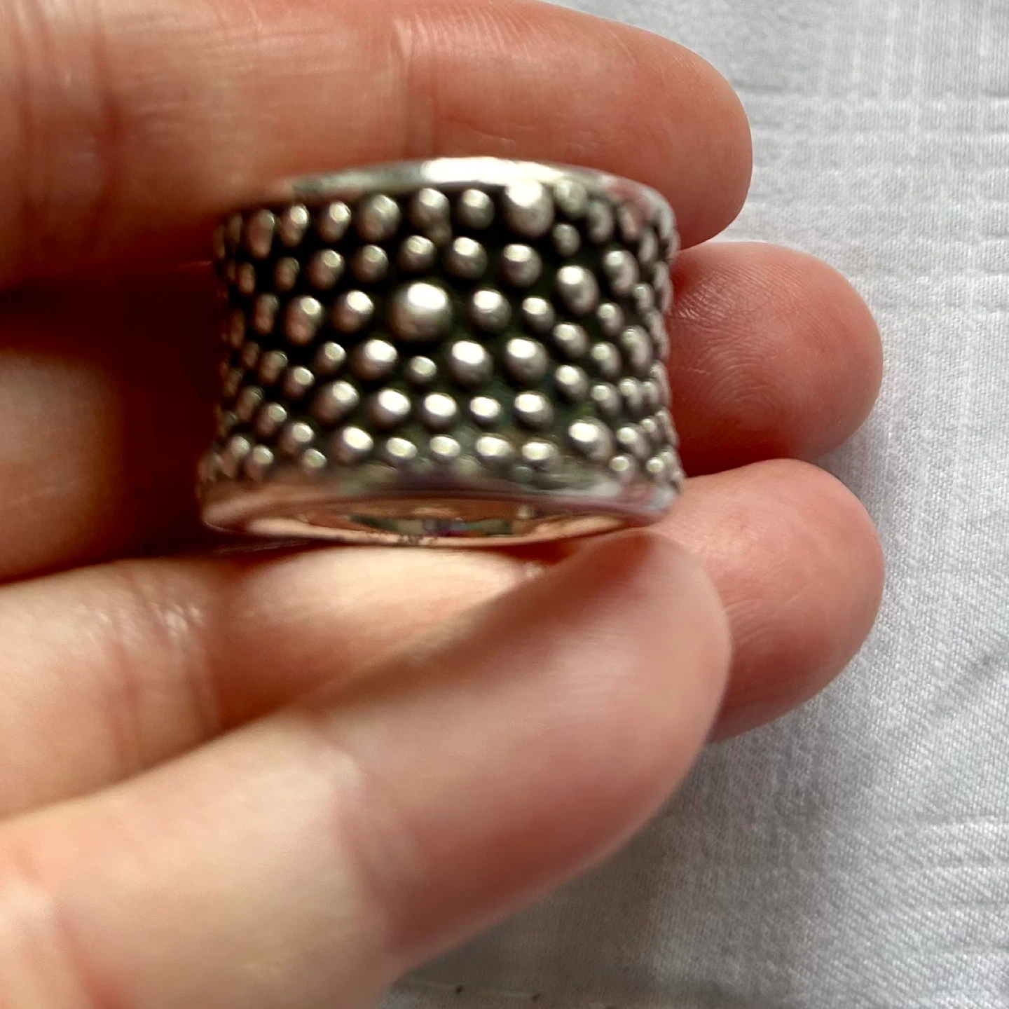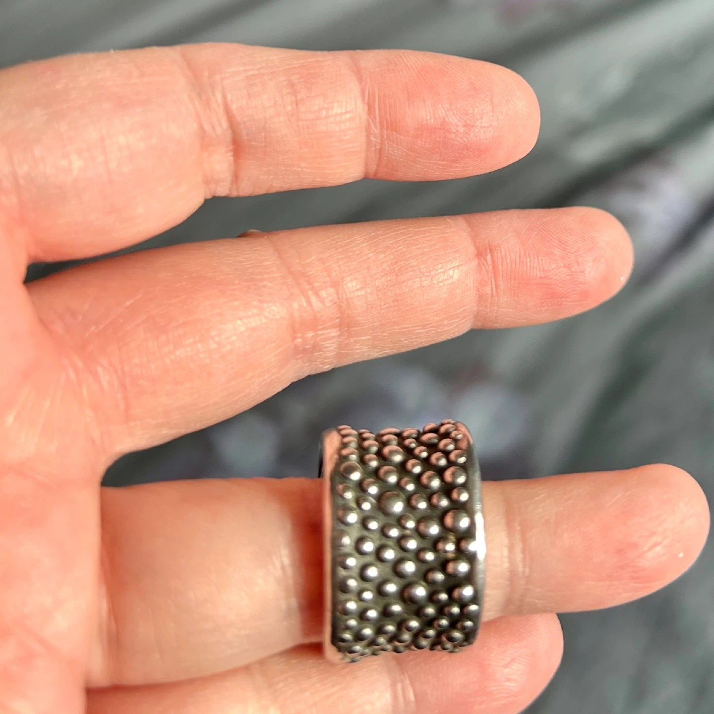 Soul Flower sterling silver ring with a beaded design. It's a size 8 or 8.5. This ring is great for adding texture to your ring stack!
