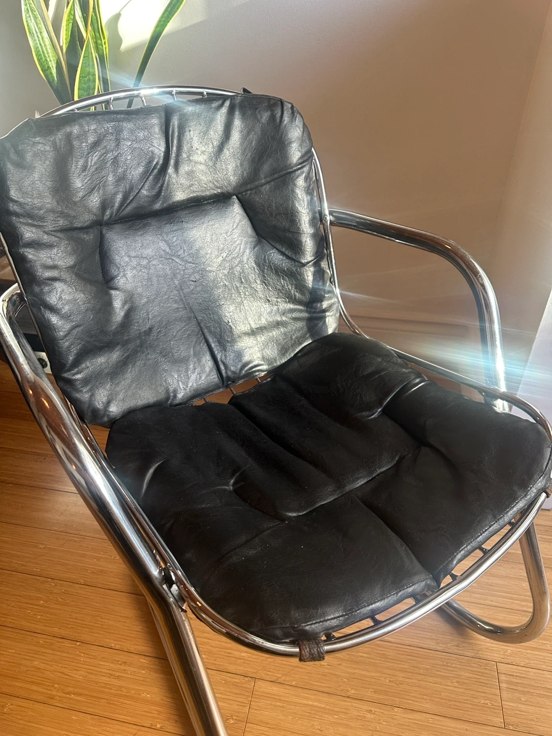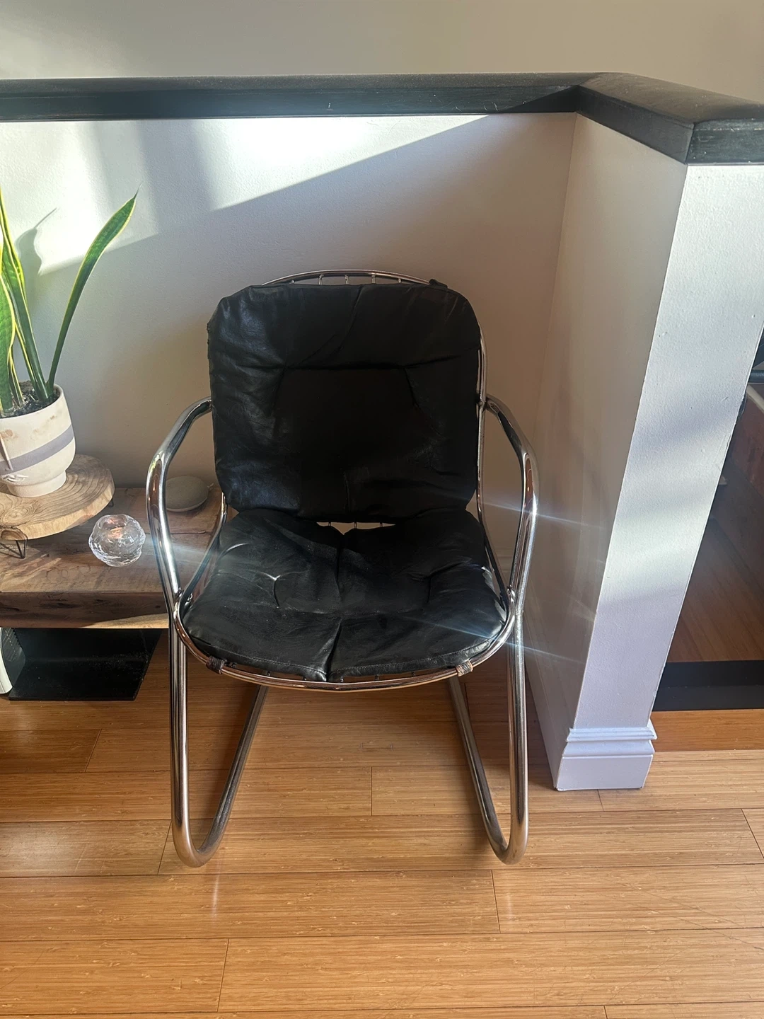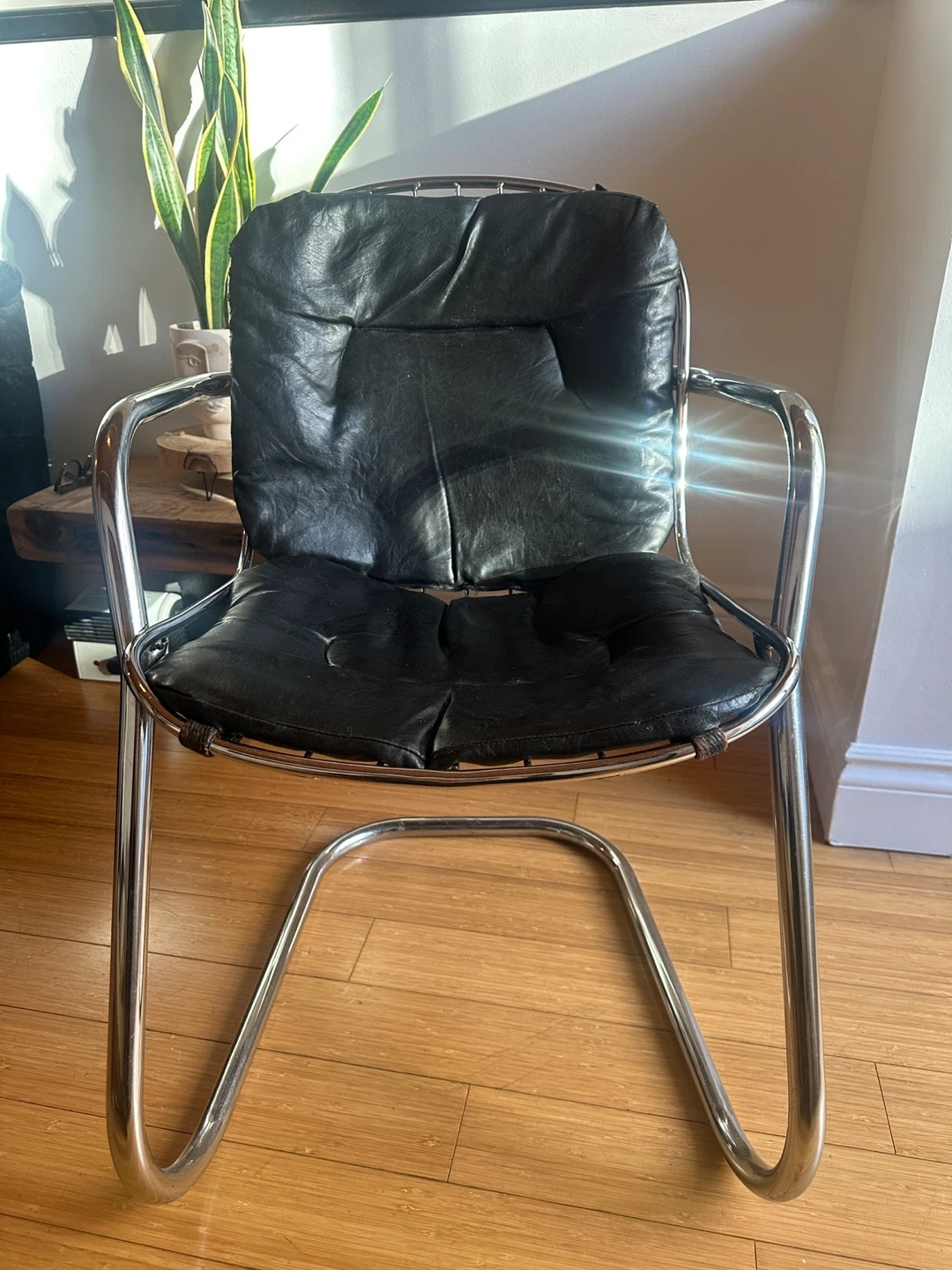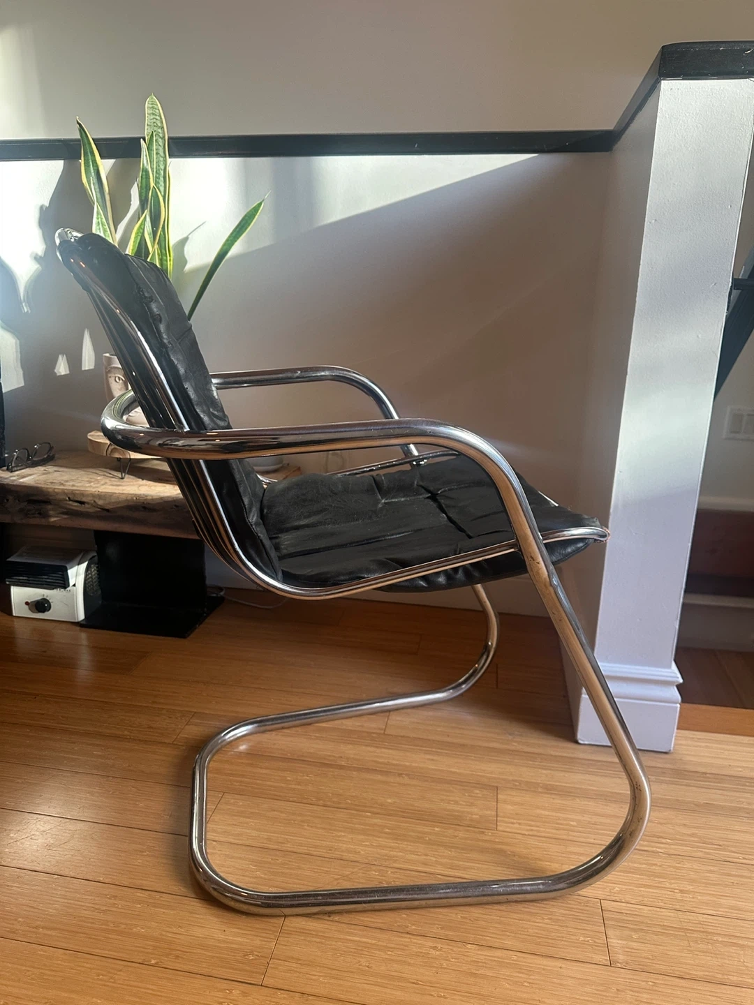 A beautiful mcm cantilever chrome chair. Black leather pad seat. Excellent condition minimal signs of wear.